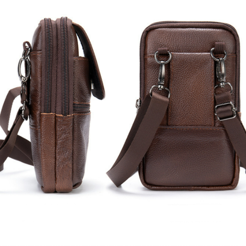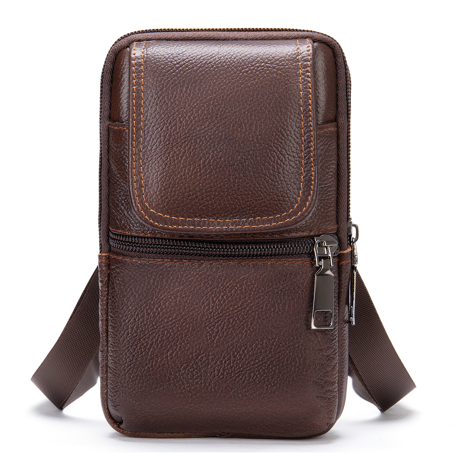 Sac à bandoulière en cuir véritable pour homme, sac multifonctionnel Brown