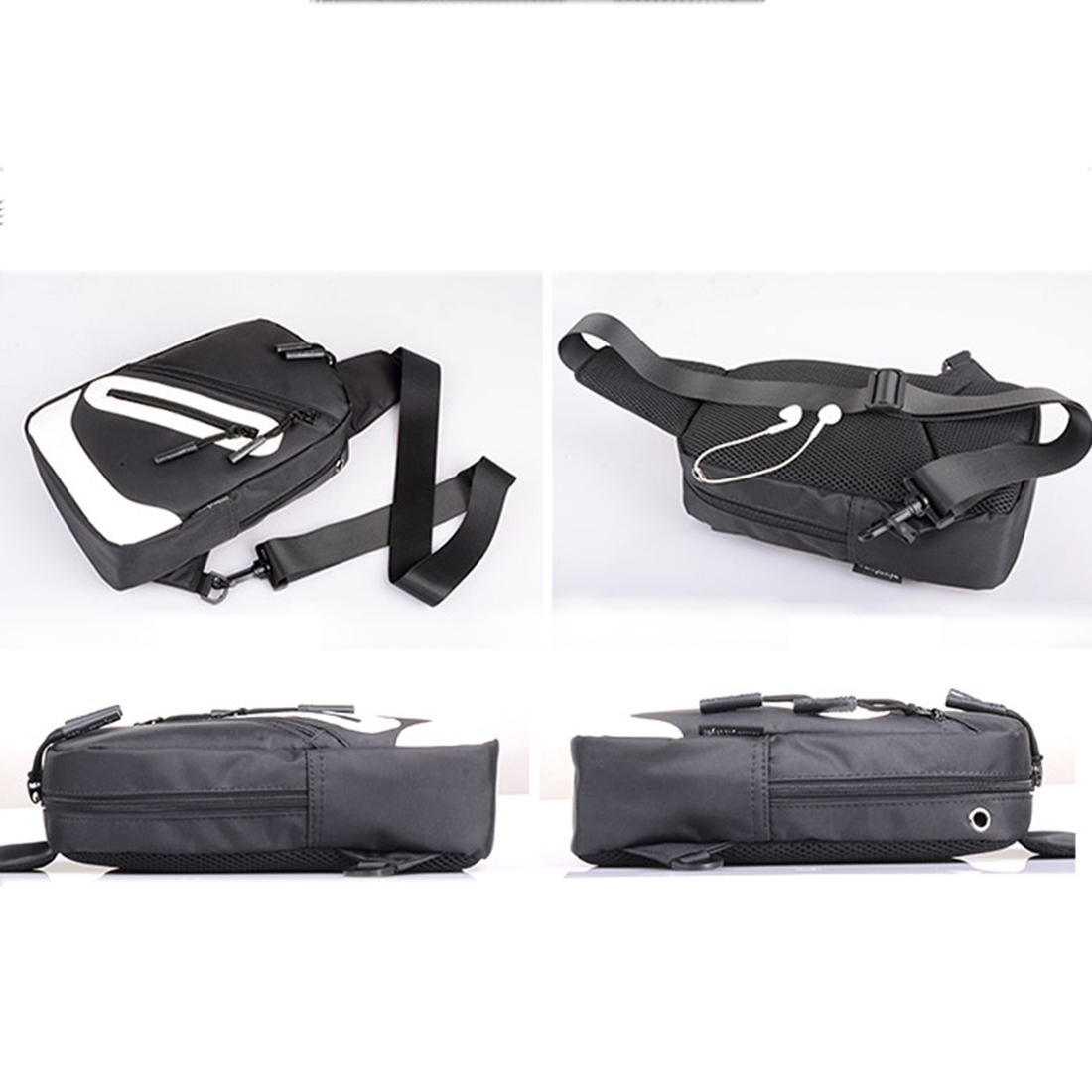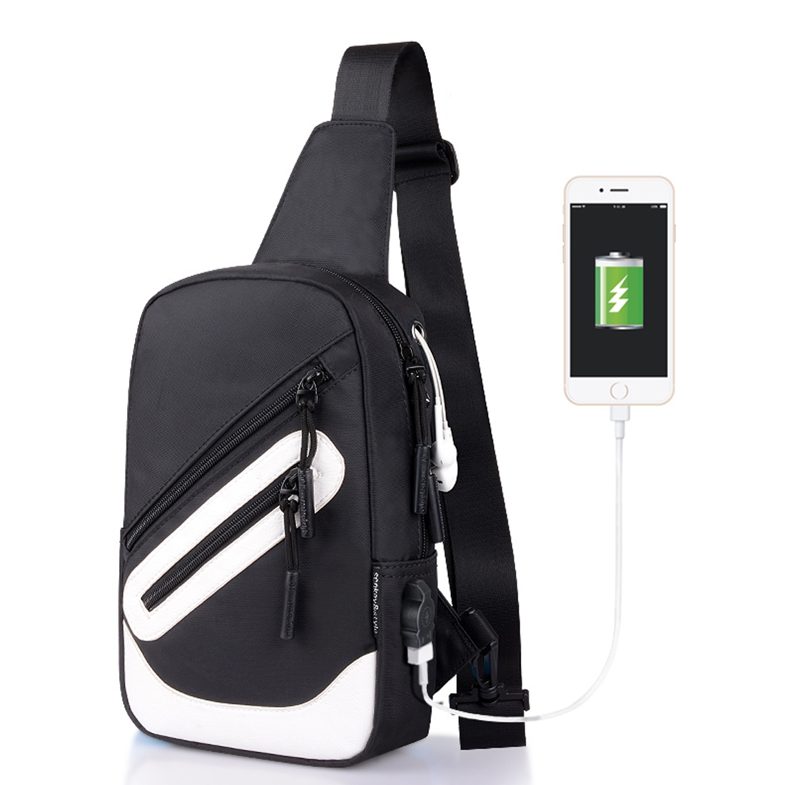 Sac À Bandoulière Multifonctionnel Charge USB Externe Étanche Blanc Noir YONIS