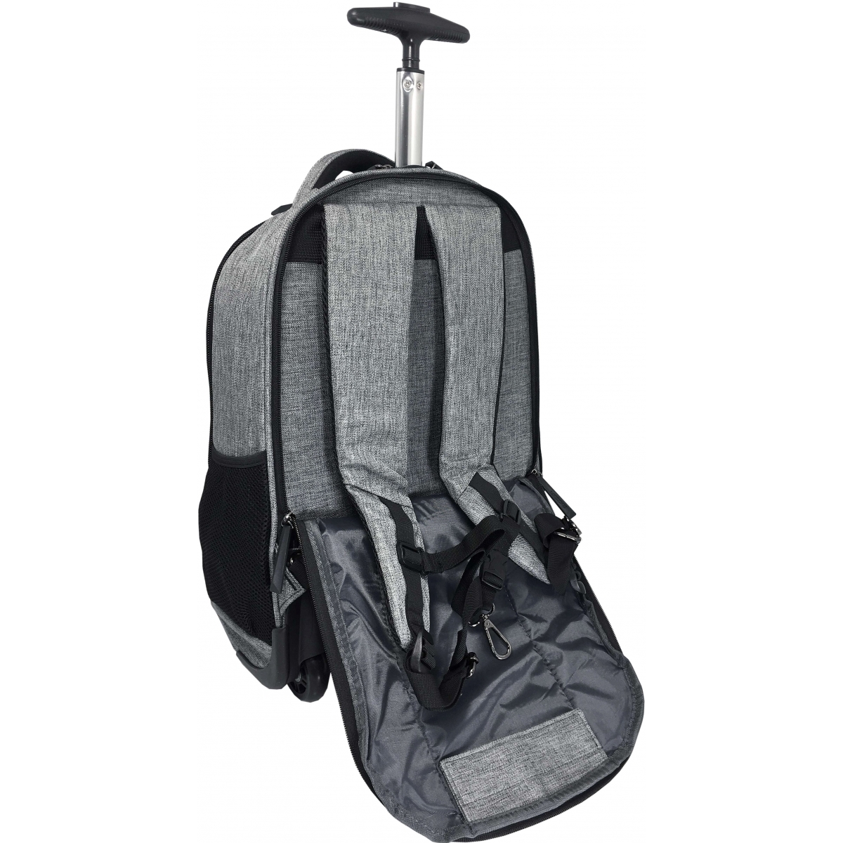 2 bretelles ergonomiques, réglables et amovibles, permettant leur rangement dans le compartiment au dos du sac prévu à cet effet, pour un usage du sac en mode roulettes,
