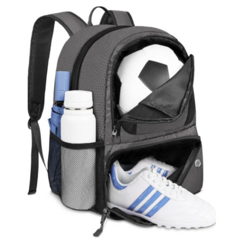 Compartiment à ballon spacieux : Le compartiment à ballon dédié est conçu pour contenir en toute sécurité un ballon de football de taille 5 standard, le gardant séparé de votre autre équipement et évitant les rayures ou les dommages.