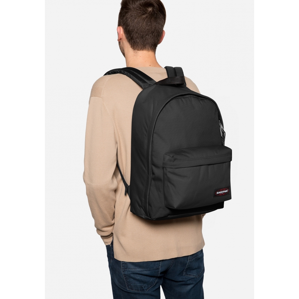 À l'intérieur, le sac à dos Eastpak Out Of Office possède un grand compartiment principal avec une grande poche ordinateur (hauteur : 33 cm, largeur : 29 cm et profondeur : 3 cm).