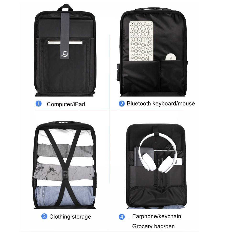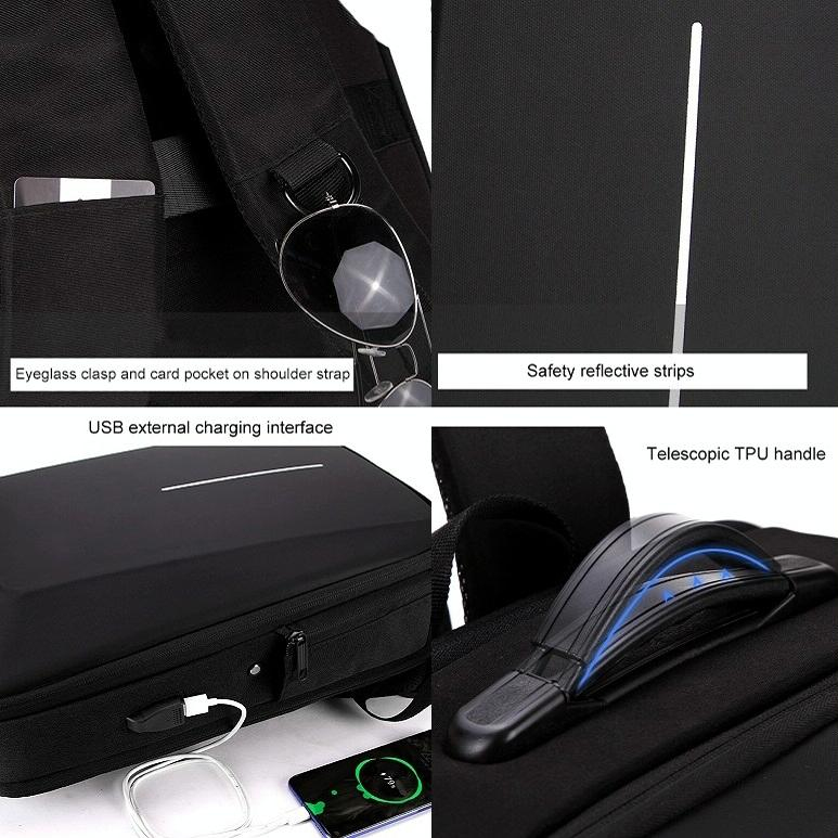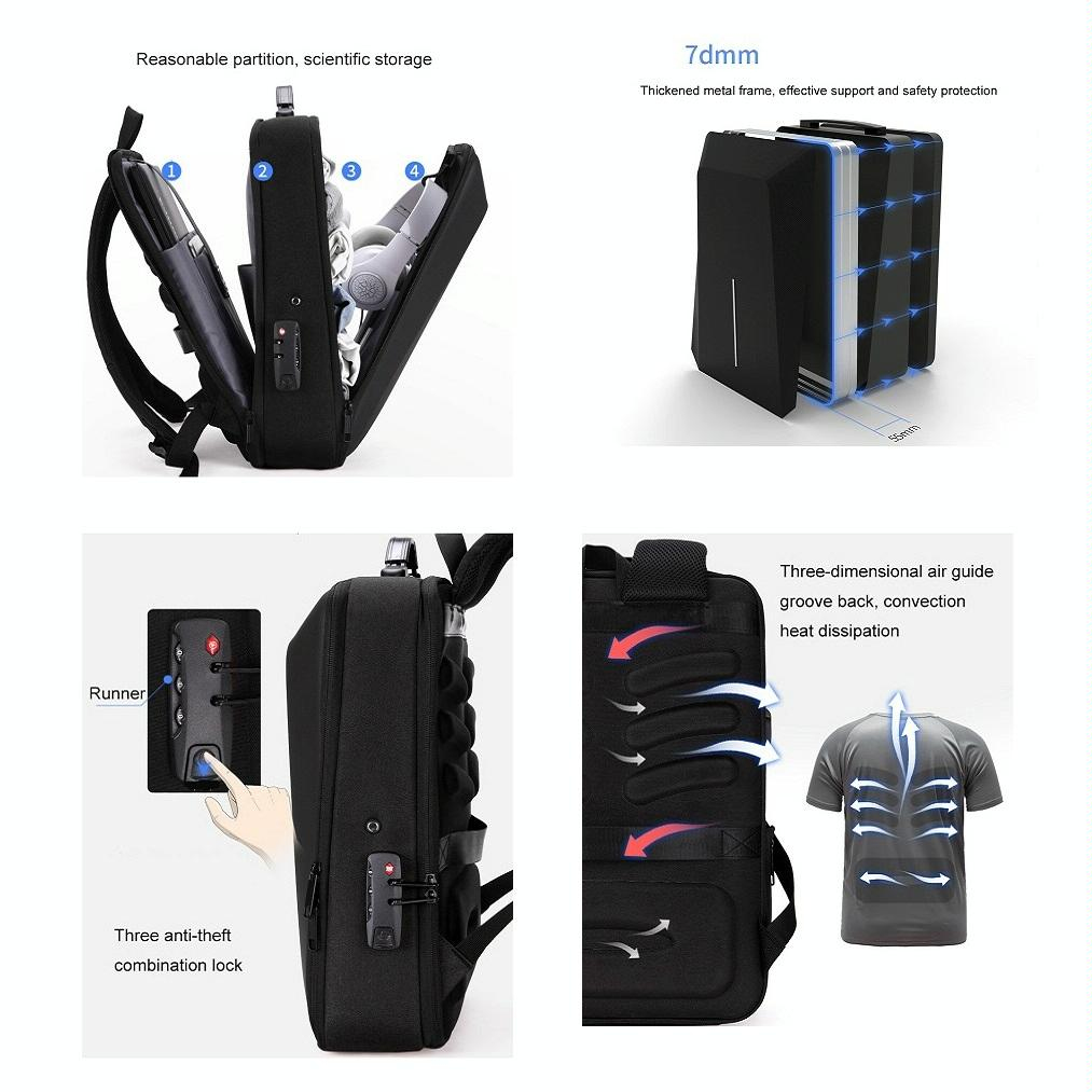 Fonctionnalités du Sac à dos ordinateur. - Respirant, étanche, résistant à l'usure, anti-vol, résistant aux chocs et réducteur de charge.