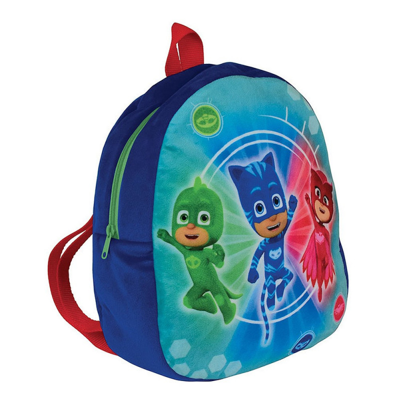 Votre enfant pourra y ranger son doudou, son go�ter ou ses jouets ! Il sera heureux de porter un sac � dos avec ses h�ros pr�f�r�s de la s�rie anim�e PYJAMSQUES ! Sa peluche toute douce et ses couleurs vives feront le bonheur de votre enfant ! Bretelles r�glables - hauteur +/- 29 cm