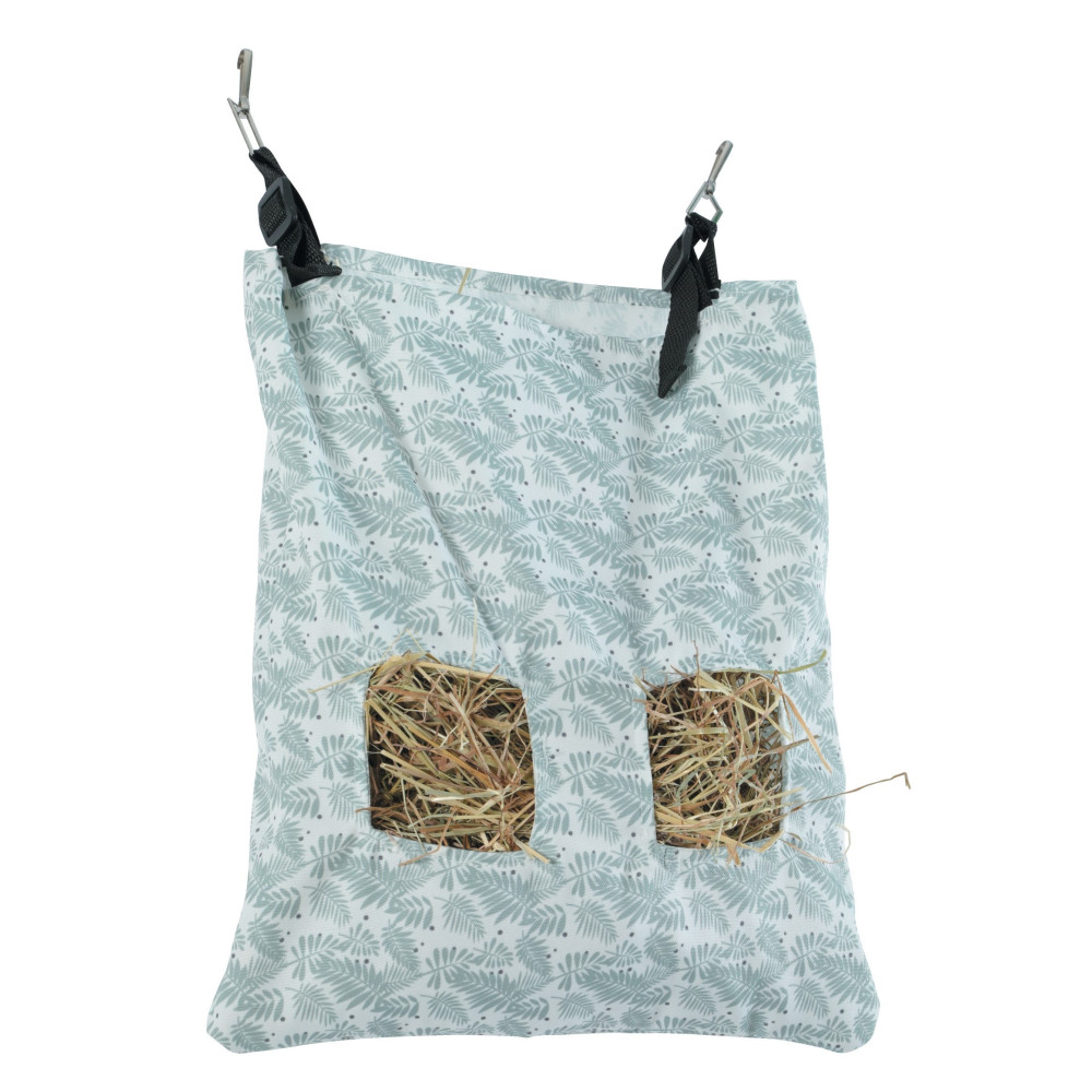 • Sac à foin avec liens réglables, crochets d'attaches et fermeture scratch en haut du sac