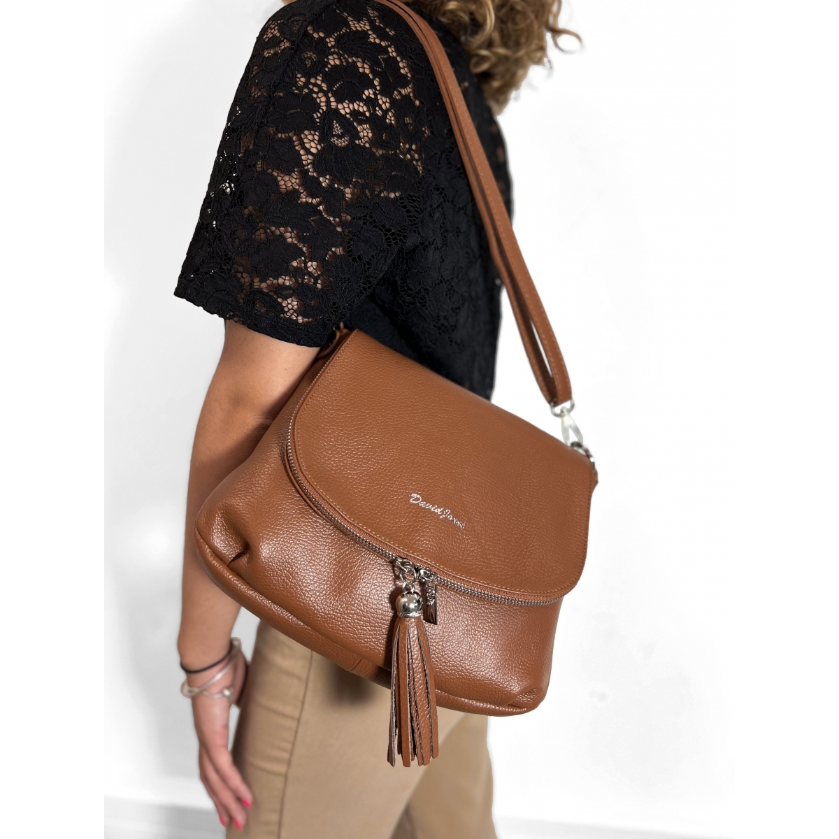 Sac à main à rabat en cuir de vachette David Jones Cuir