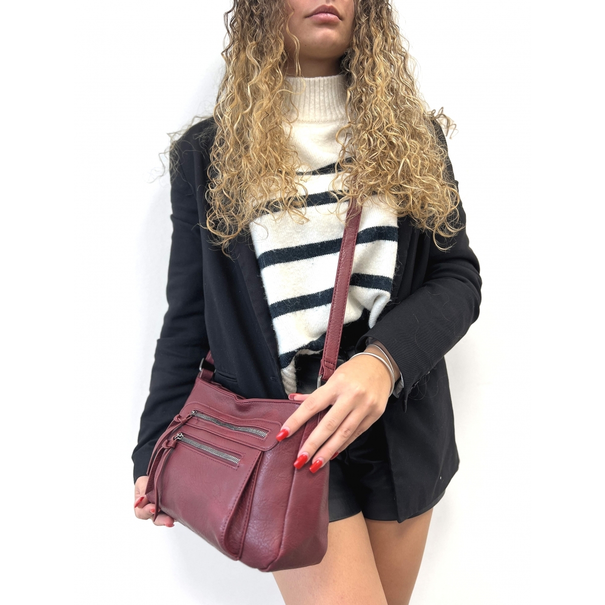 1 poche zippée au dos du sac porté travers.