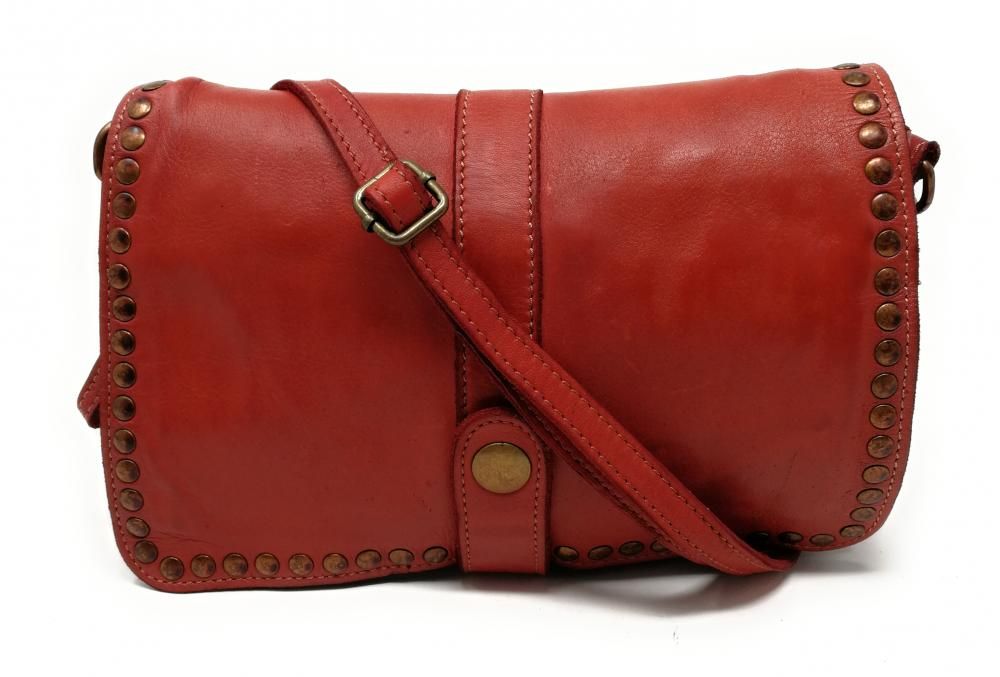 Sac porté épaule pour femme en véritable 100% cuir souple délavé, fabriqué en Italie