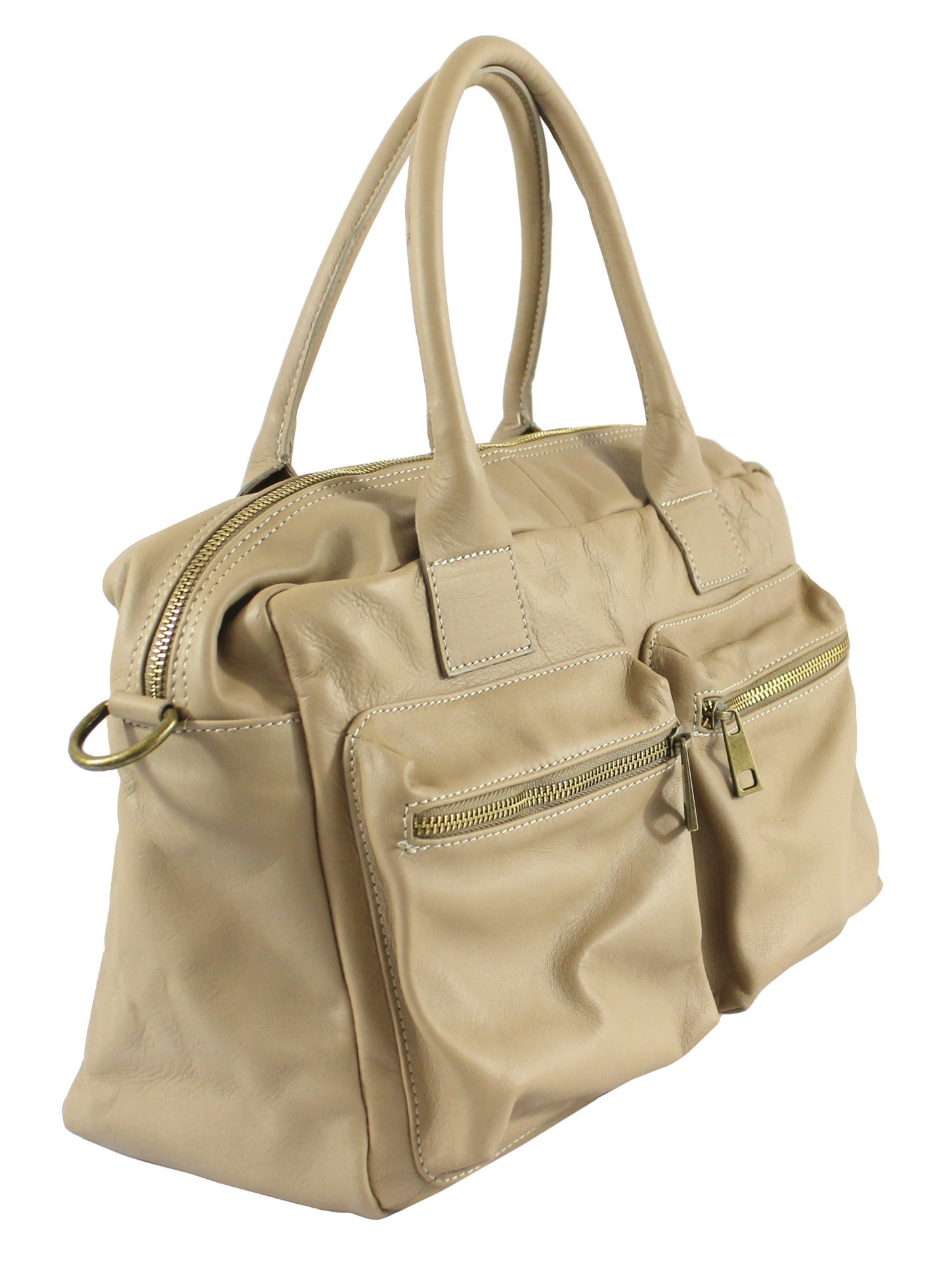 Ce joli sac à main femme d’origine italienne est confectionné en véritable 100% cuir souple. Il est orné de deux poches avant à glissière et une poche supplémentaire arrière avec fermeture à glissière. Son intérieur avec doublure en tissu est équipé d’une poche zippée et un support pour téléphone portable. Portez-le à la main ou utilisez sa bandoulière amovible/réglable pour vous libérer les mains. Ce sac à main femme en 100% cuir se ferme à l’aide d’une fermeture éclair.