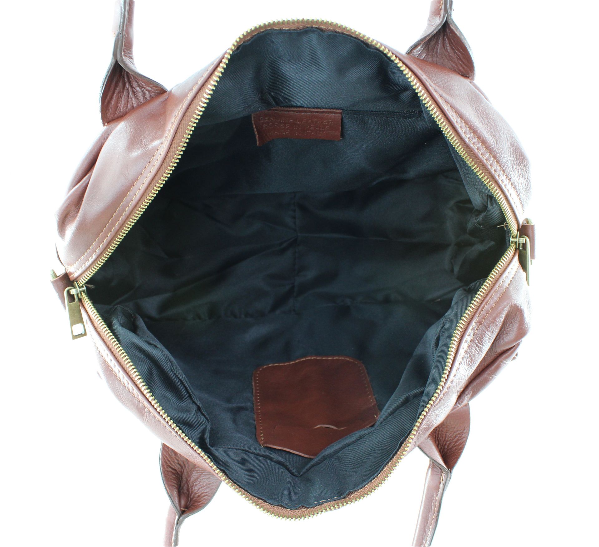 Ce joli sac à main femme d’origine italienne est confectionné en véritable 100% cuir souple. Il est orné de deux poches avant à glissière et une poche supplémentaire arrière avec fermeture à glissière. Son intérieur avec doublure en tissu est équipé d’une poche zippée et un support pour téléphone portable. Portez-le à la main ou utilisez sa bandoulière amovible/réglable pour vous libérer les mains. Ce sac à main femme en 100% cuir se ferme à l’aide d’une fermeture éclair.