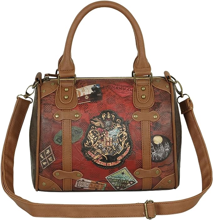 Produit sous licence officielle Harry Potter. Sac à main Harry Potter modèle Poudlard rétro. Double poignée : poignées à main avec anneaux métalliques et bandoulière extensible et amovible. Fermeture Eclair. Dimensions approximatives du produit : 25 x 18,5 x 15 cm.