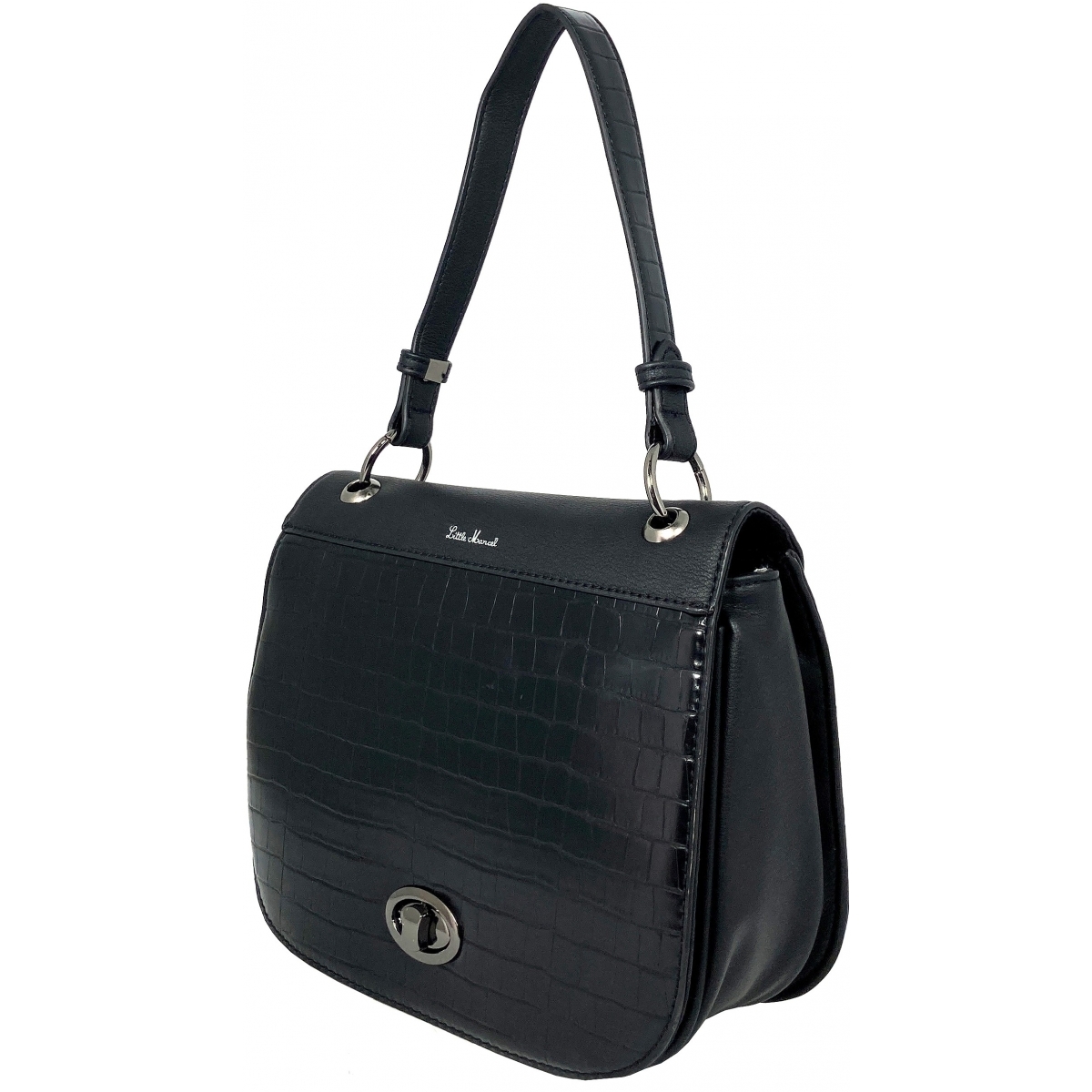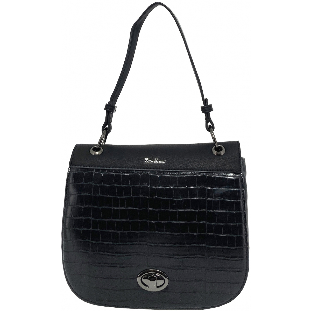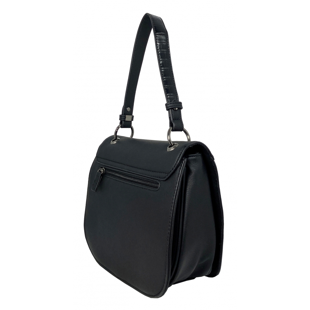 Détails extérieurs : Un large compartiment central avec zip de fermeture surmontée d'un rabat avec fermeture à tourniquet,