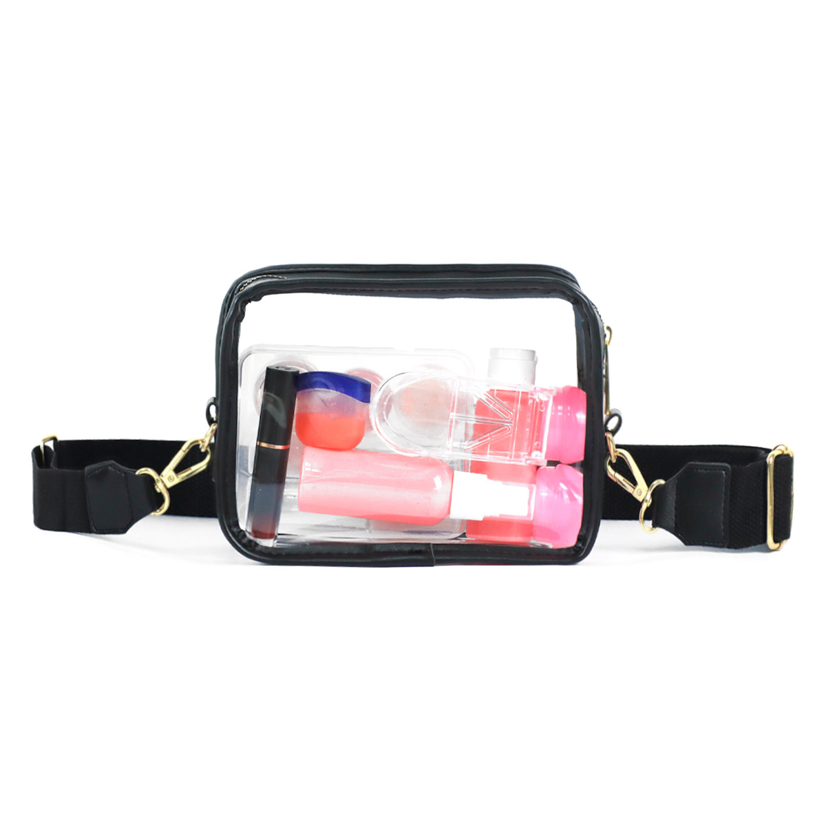 Le sac est transparent et fabriqué en PVC, ce qui est facile à passer les points de contrôle de sécurité et vous fait gagner du temps lors de la recherche de vos affaires. Parfait pour ranger de petits objets lors d'événements sportifs, de concerts, etc.