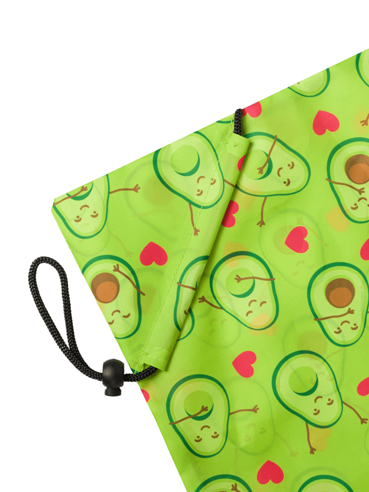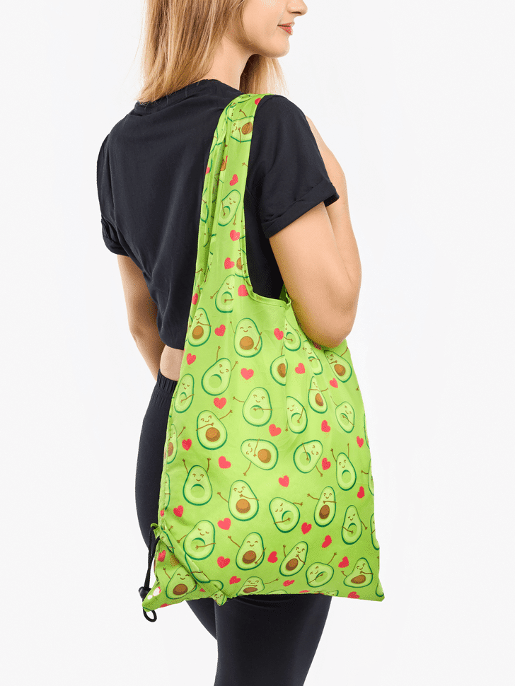 Sac de courses fantaisie en matière recyclée, motifs avocats. Encombrement minimal avec sa proche pratique pour le ranger quand il est vide. Vous pouvez l'assortir avec vos chaussettes.