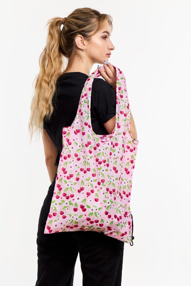 Sac de courses fantaisie en matière recyclée, motifs Fleurs de Cerisier. Encombrement minimal avec sa proche pratique pour le ranger quand il est vide. Vous pouvez l'assortir avec vos chaussettes.