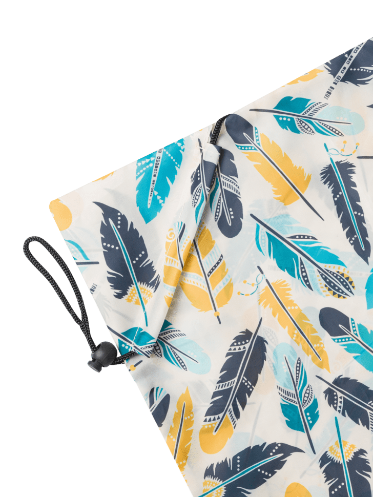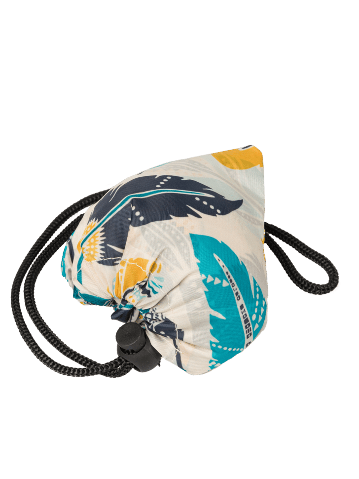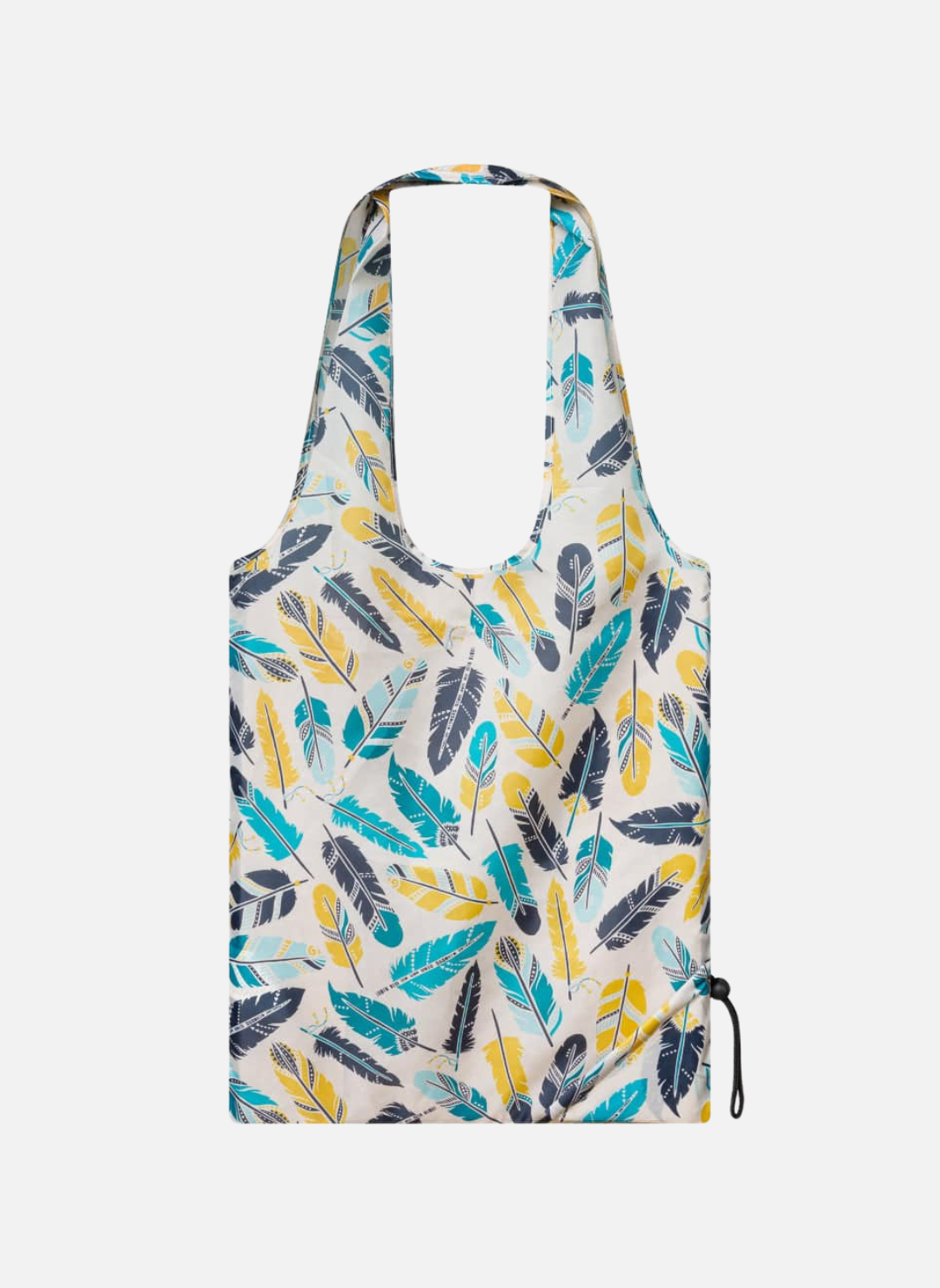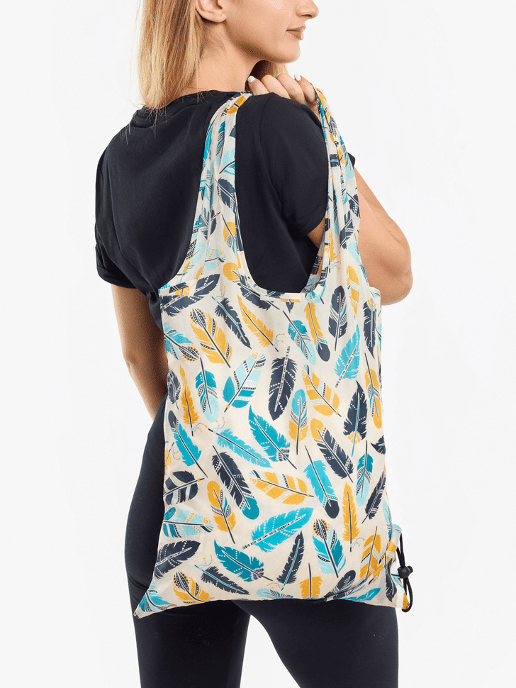 Sac de courses fantaisie en matière recyclée, motifs Plumes. Encombrement minimal avec sa proche pratique pour le ranger quand il est vide. Vous pouvez l'assortir avec vos chaussettes.