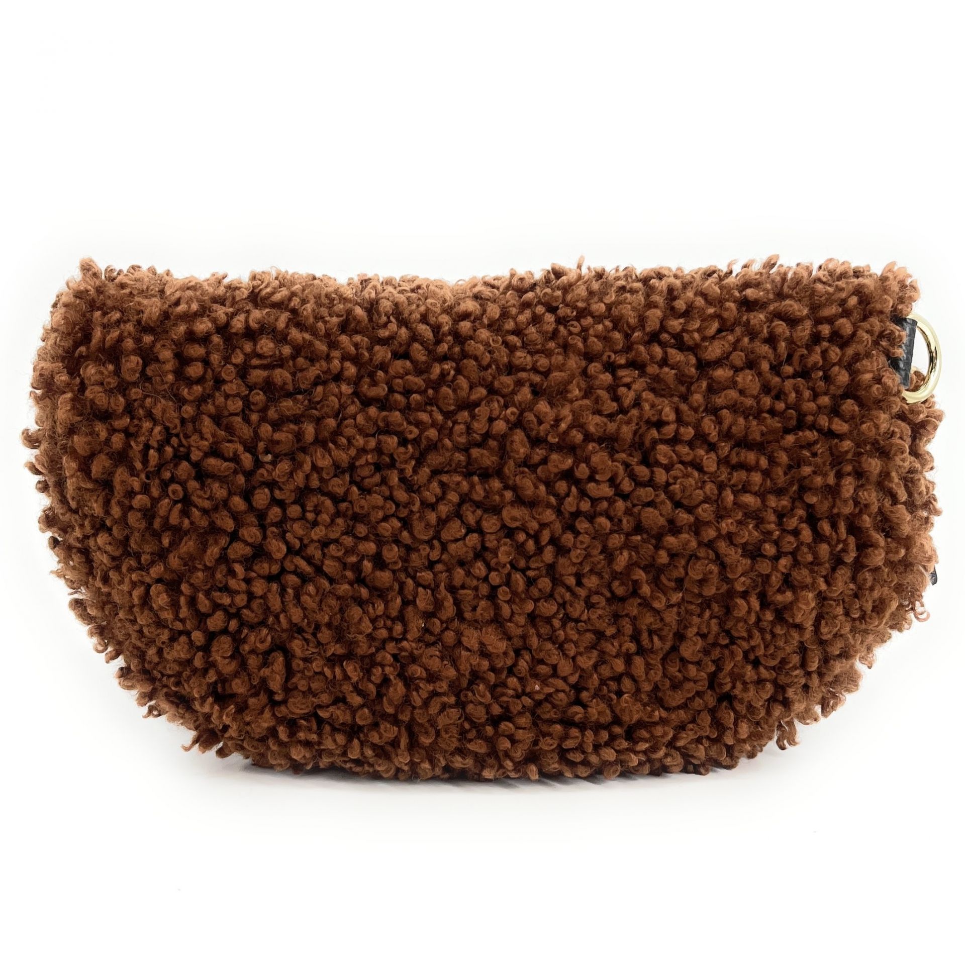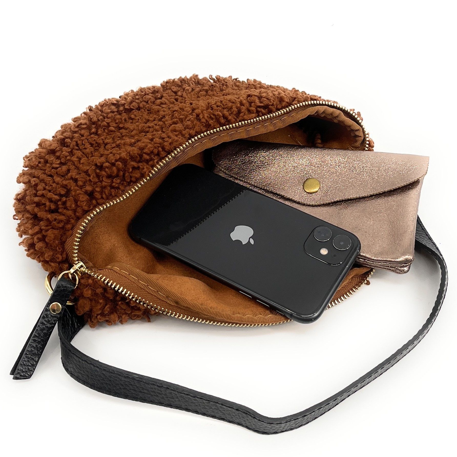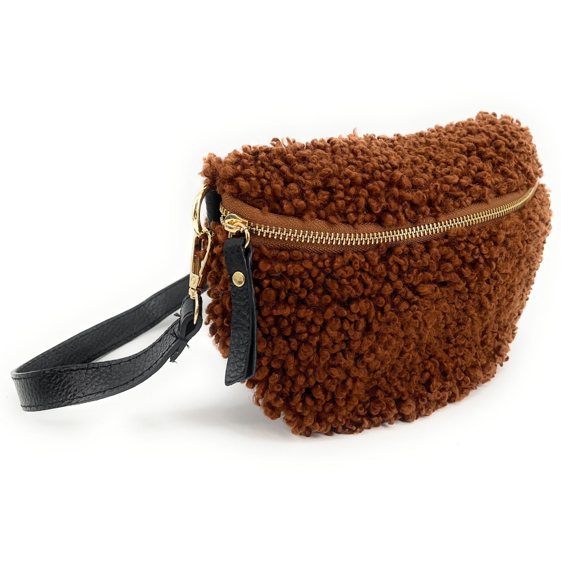 Sac banane/mini sac en cuir et tissu peluche façon mouton