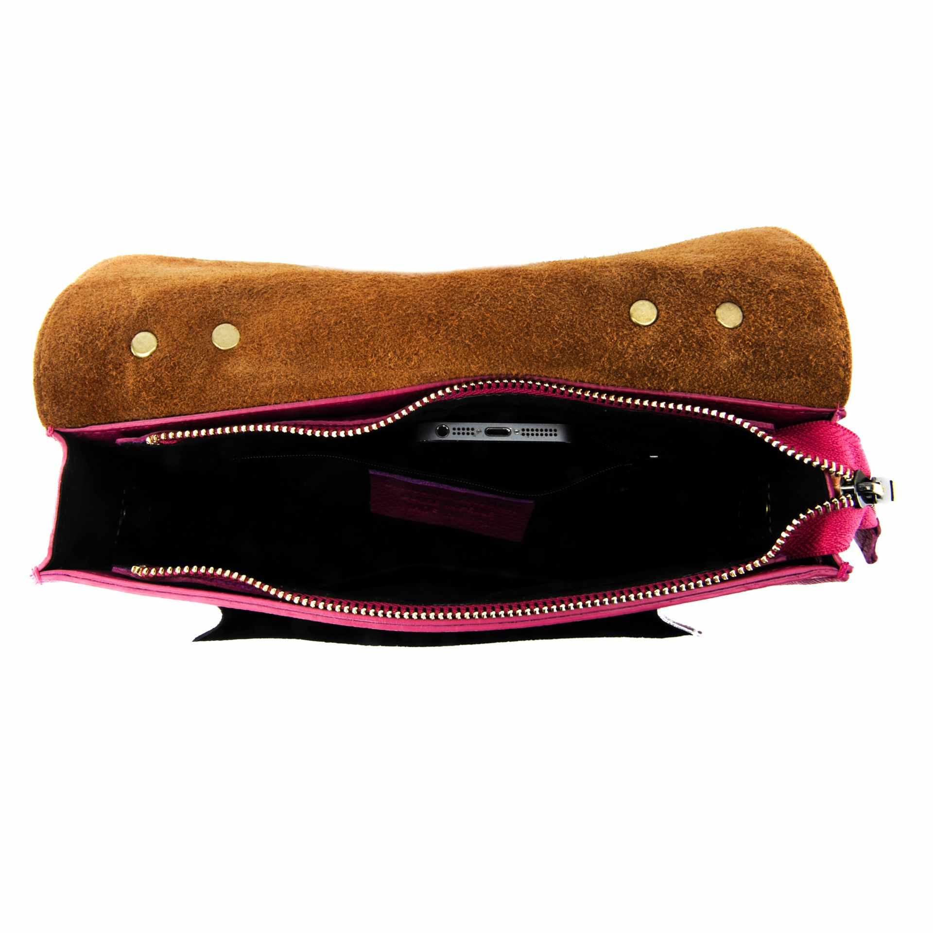 Un compartiment central zippé – une poche zippée – une poche plaquée pour emplacement pour clé ou portable – une poche zippée sur le dos – une poche plaquée sur le devant – nombreux coloris disponibles