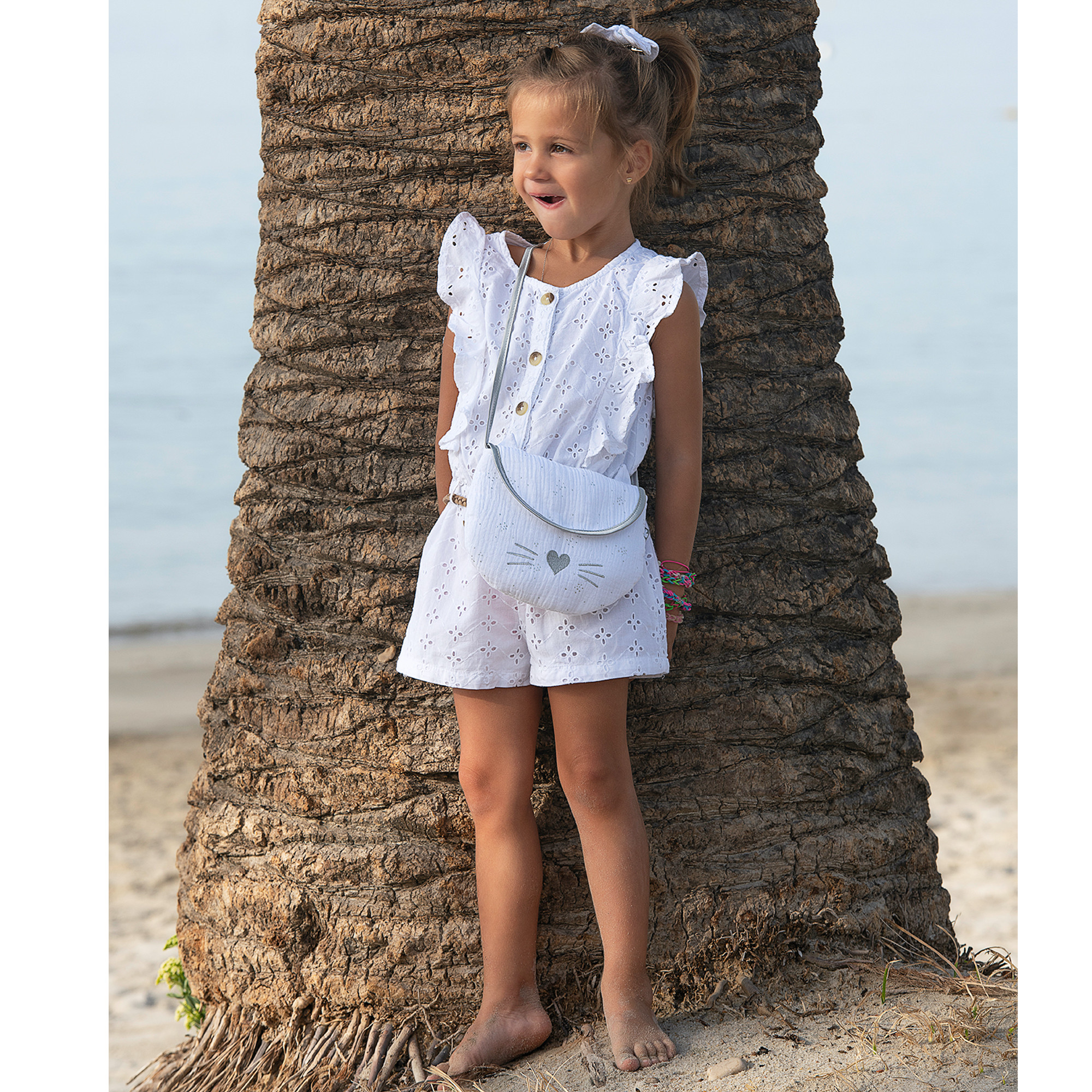 Accessoires fille confectionnés en coton à l'aspect nid d'abeilles, un matériau à la fois tendance, résistant et facile à vivre.