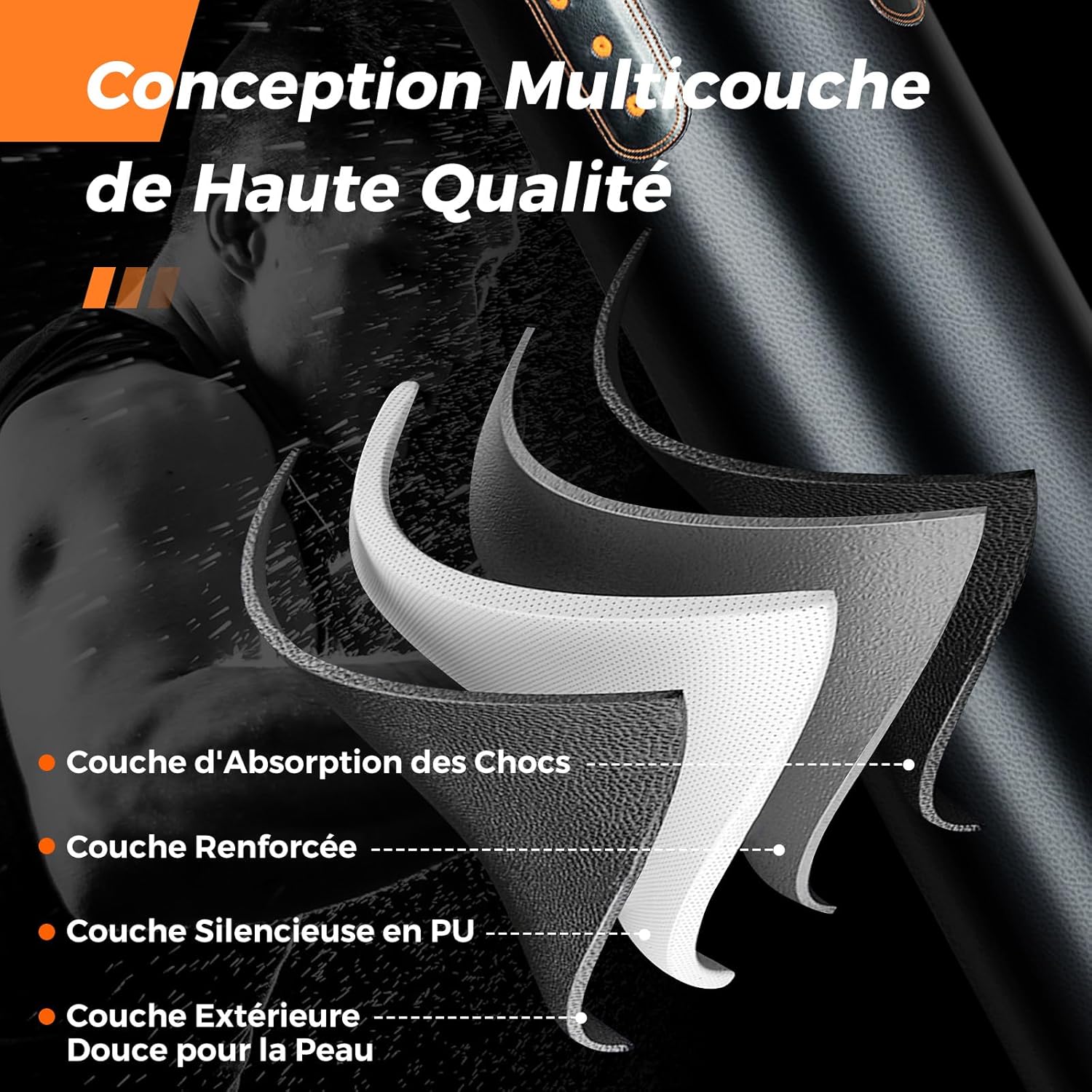 [ Matériau de haute qualité ] Conçu avec un design multicouche, notre ensemble de sac de frappe offre une protection optimale et des performances durables pour votre entraînement quotidien. Le savoir-faire excellent garantit que le sac de boxe peut résister aux rigueurs d'un entraînement intense et offrir des performances durables.
