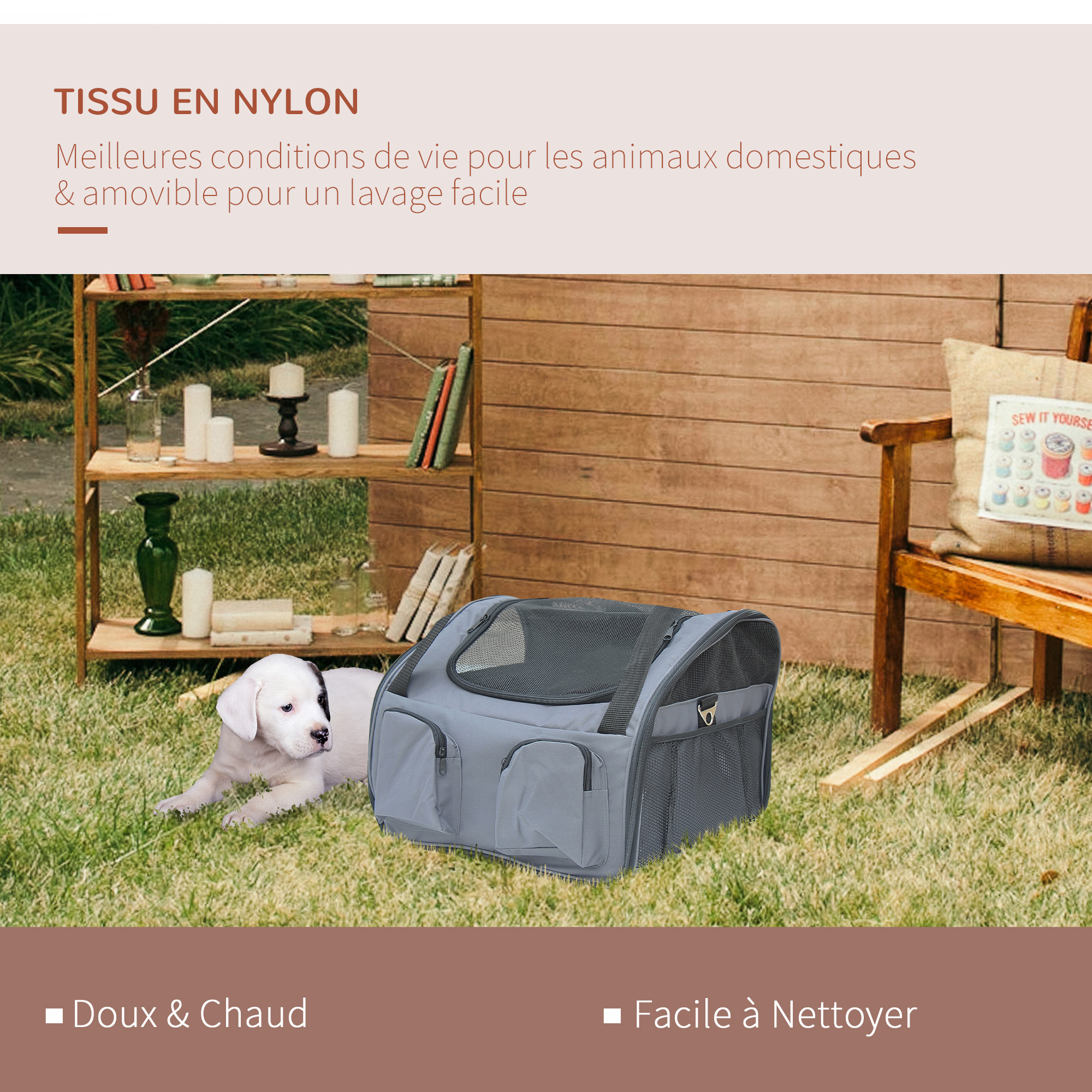 Sac de transport pour chien et chat pliable - poignées, entrée zippée, poches - coussin amovible inclus -