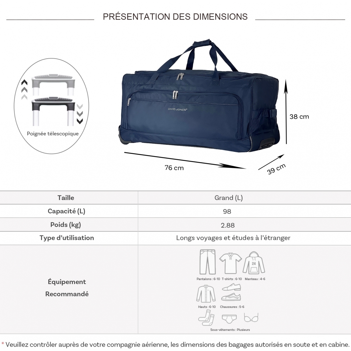 | Libellé | Sac de voyage avec roulettes 98L 76cm |