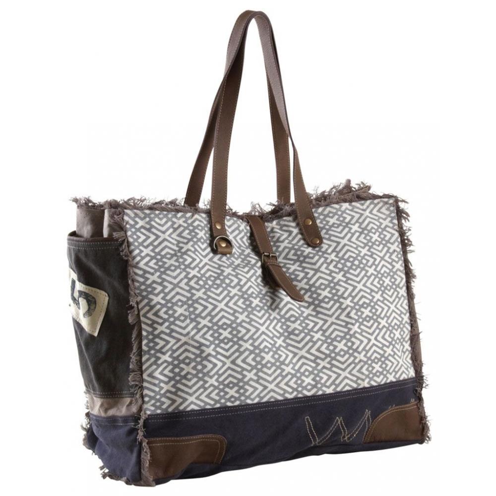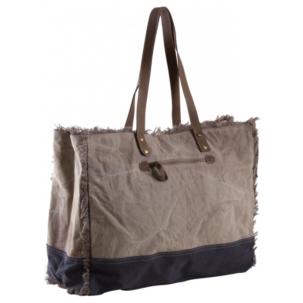 Sac graphique en coton avec 2 anses en cuir de buffle pleine fleur.