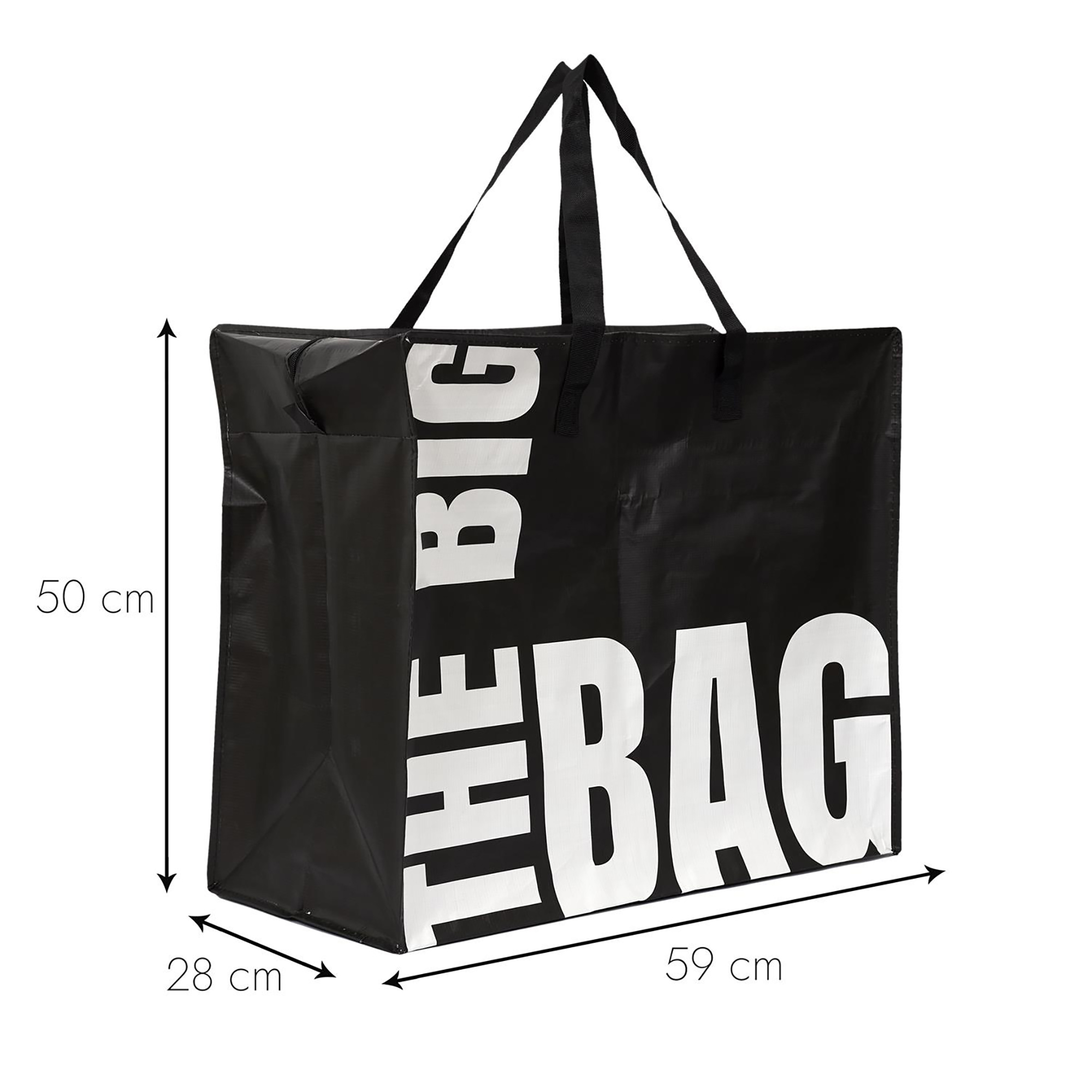 | Plus produit | Sac multi usage XXL PILI noir "The big bag" 80L en plastique PP (polypropylène); Dimensions 59cm de largeur, hauteur 50cm, longueur 28cm et fermeture zip |
