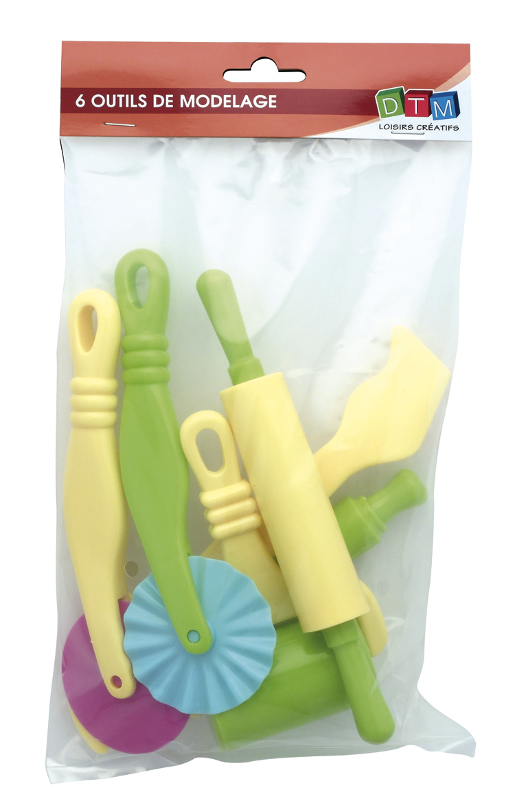 Lot de 6 outils de modelage pour les enfants. En plastique, ne présentent pas de risques de manipulation.