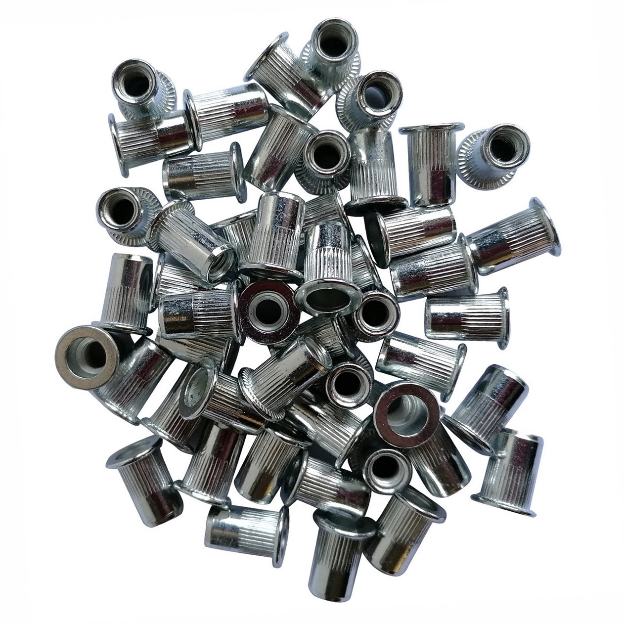 Sachet de 50 inserts filetés à sertir de Ø 10 mm en acier galvanisé.