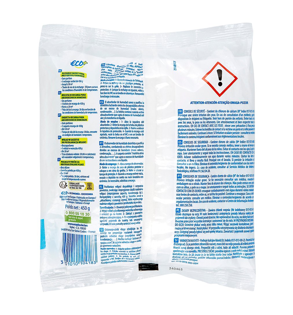 Libellé Sachet de recharge pour absorbeur d'humidité, sans parfum, 450g - ECO+