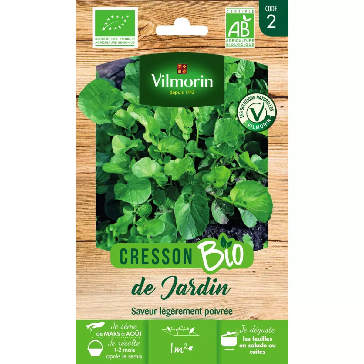 Facile à cultiver au jardin en situation fraîche et ombragée. Grâce à sa saveur rustique, le cresson est apprécié en assaisonnement et pour garnir les plats et les salades.Conseil Vilmorin : Pour étaler vos récoltes, échelonnez vos semis tous les 15 jours. Le cresson aime l'exposition légèrement ombragée.Plante(s) compagne(s) :Le cresson aime la proximité du lin car ensemble, ils renforcent leur santé respective.Le geste Bio :En été, paillez le sol pour maintenir la fraîcheur nécessaire au bien-être du cresson.