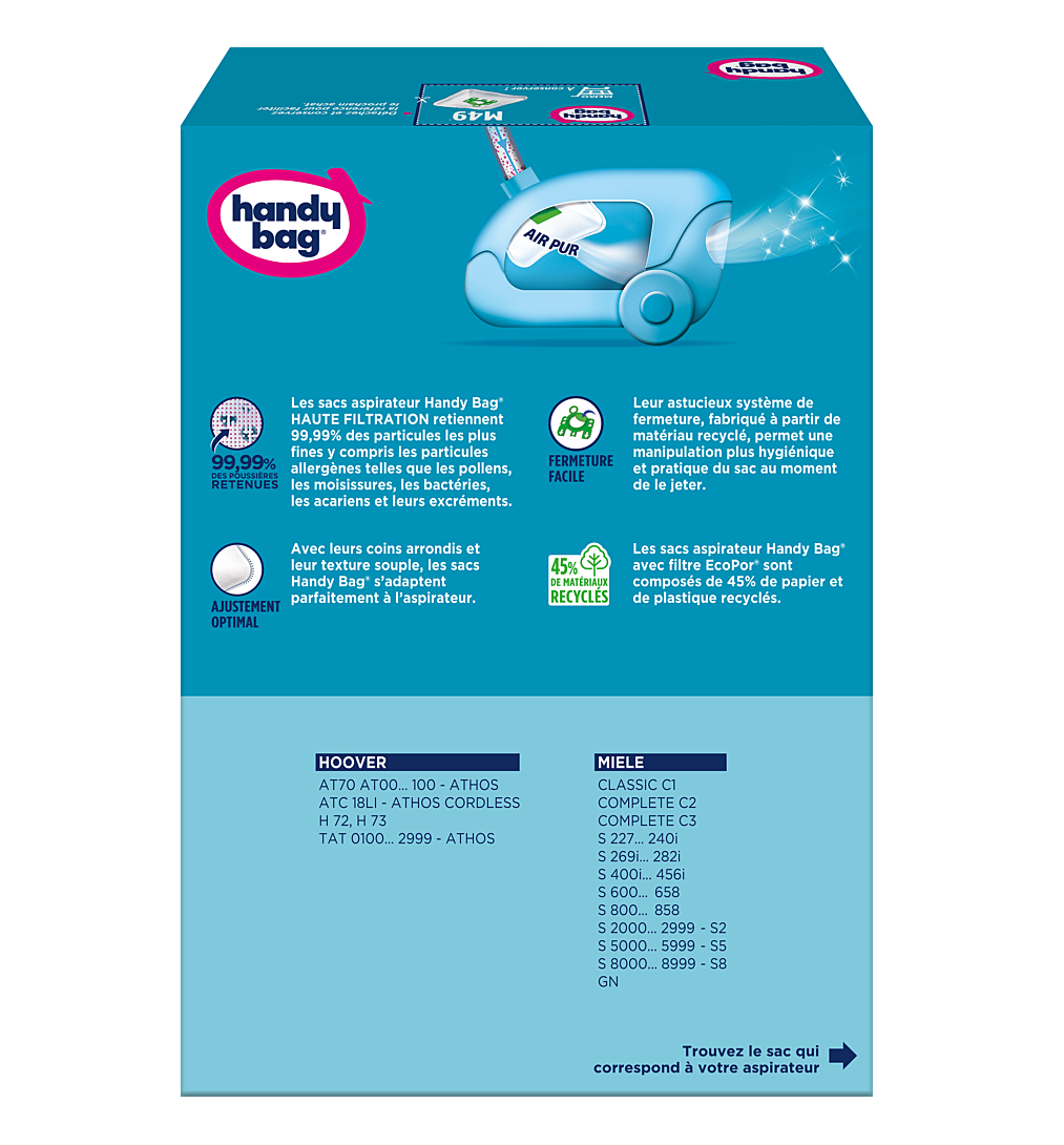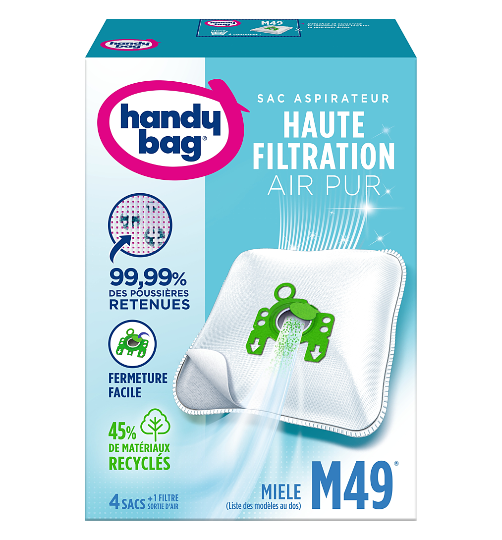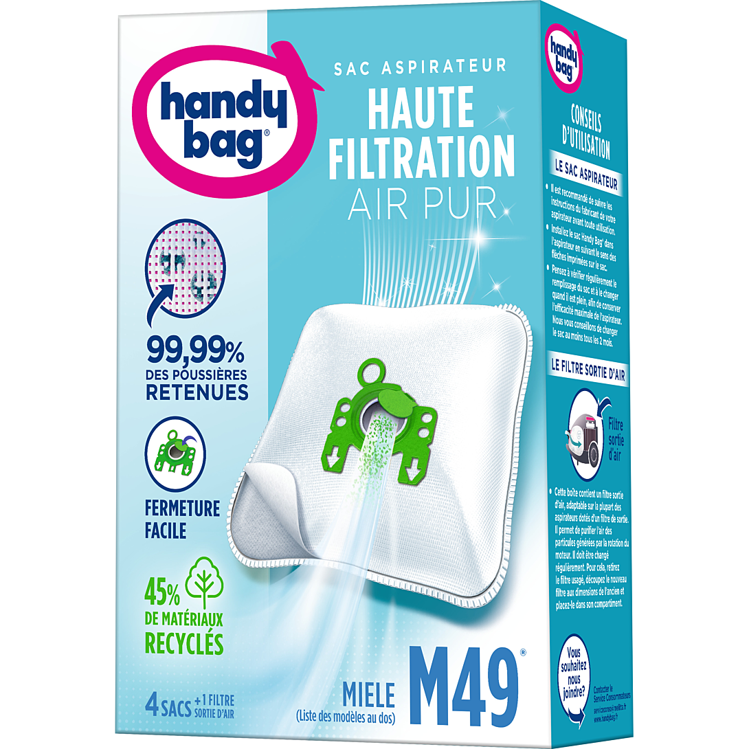 | Libellé | Sacs aspirateur M49, Miele, Hoover, 4 sacs + 1 filtre, Handy Bag |