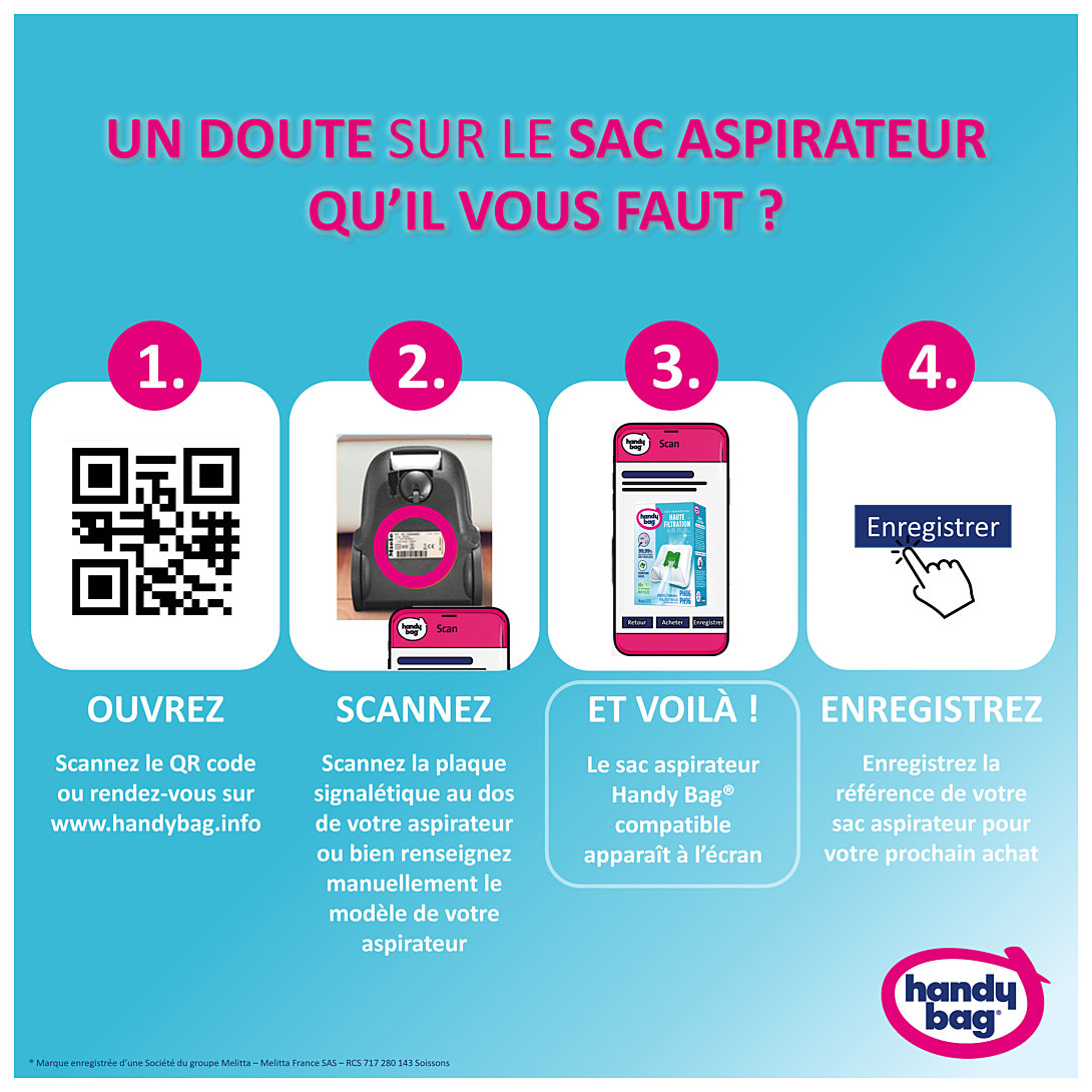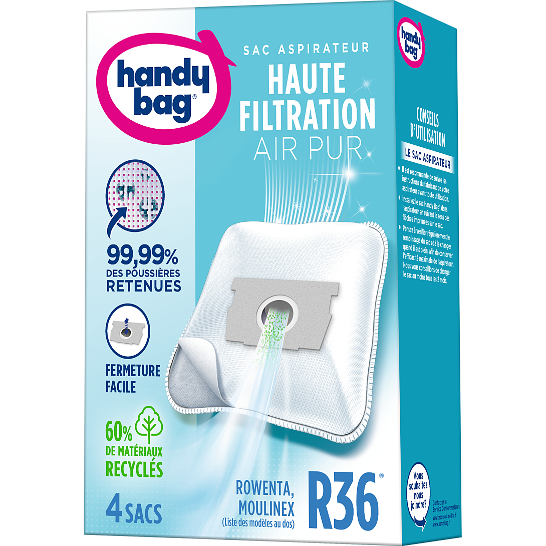 | Libellé | Sacs aspirateur R36, Moulinex, Rowenta, 4 sacs, Handy Bag |