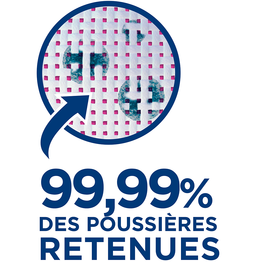 Le sac aspirateur retient 99,99% des particules les plus fines et est doté d'un système de fermeture hygiénique et pratique. Grâce aux coins arrondis, il s'adapte parfaitement à votre aspirateur. Pensez au tri : la boite en carton de ce produit est 100% recyclable. Veillez à jeter les emballages dans le bac de tri.