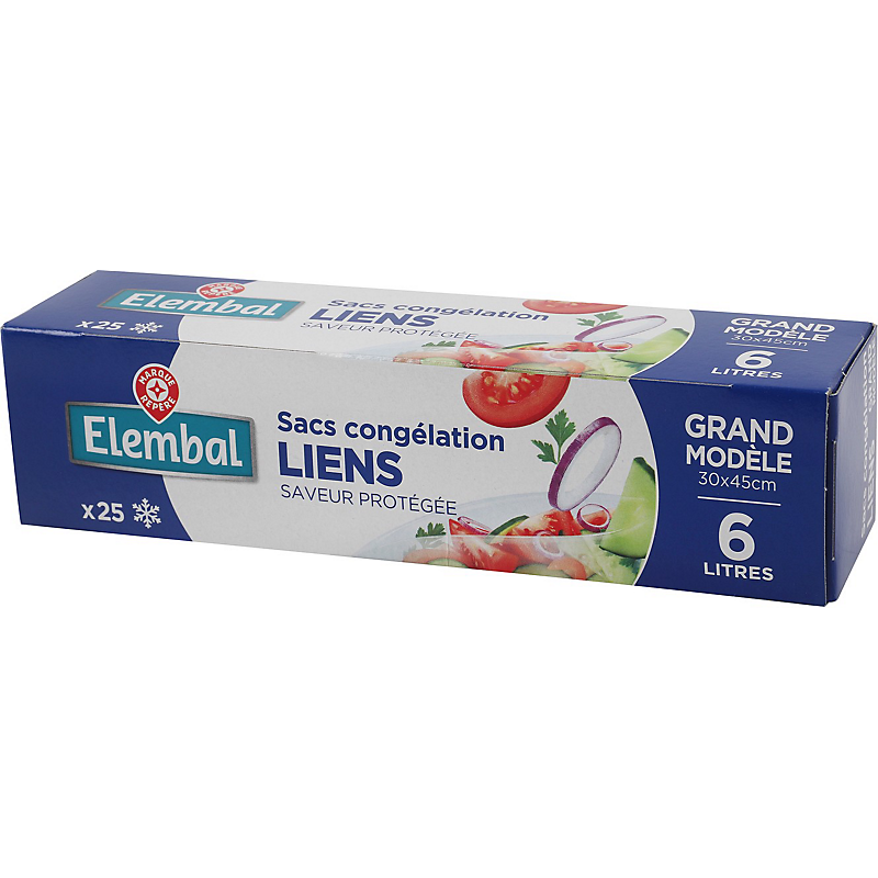 Sacs congélation lien 6l grand x25 - ELEMBAL