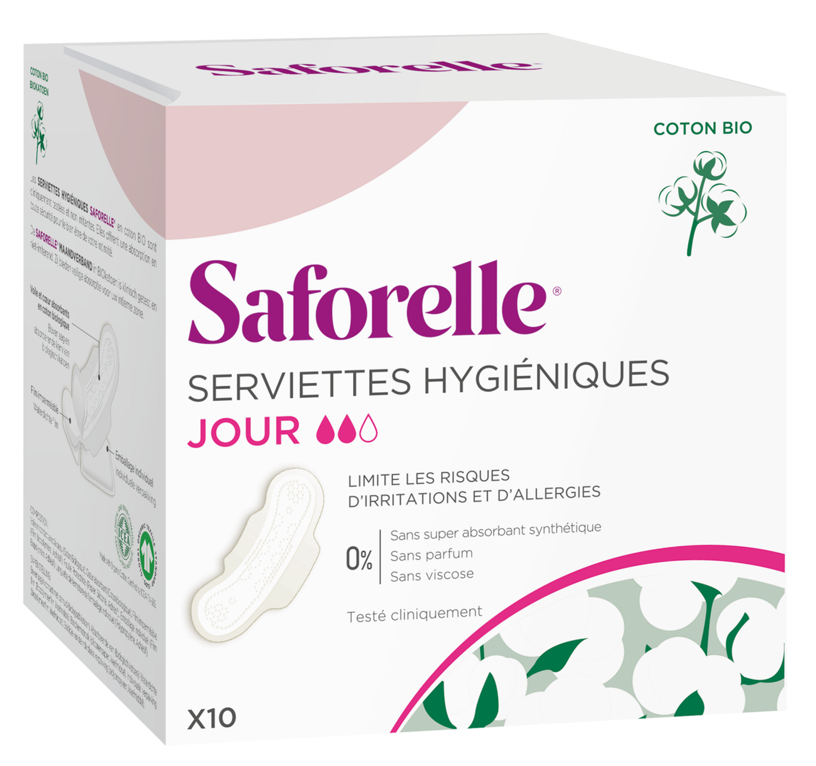 | Libellé | Saforelle coton protect serviettes hygiéniques jour boîte de 10 |