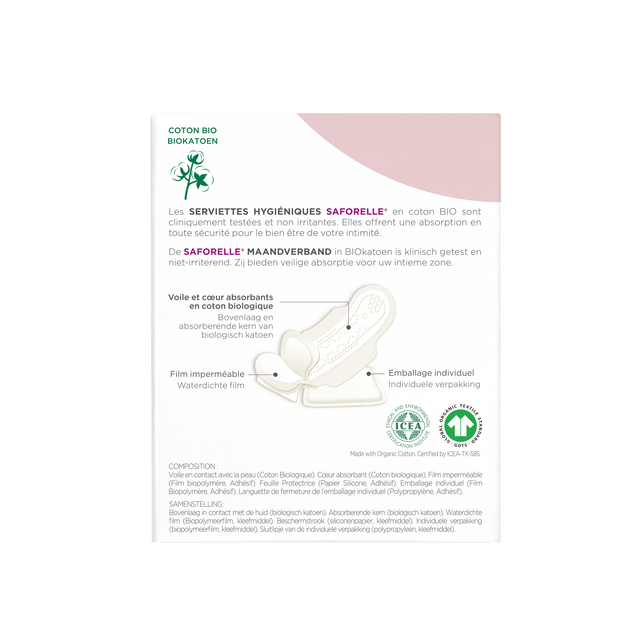 | Libellé | Saforelle coton protect serviettes hygiéniques jour boîte de 10 |