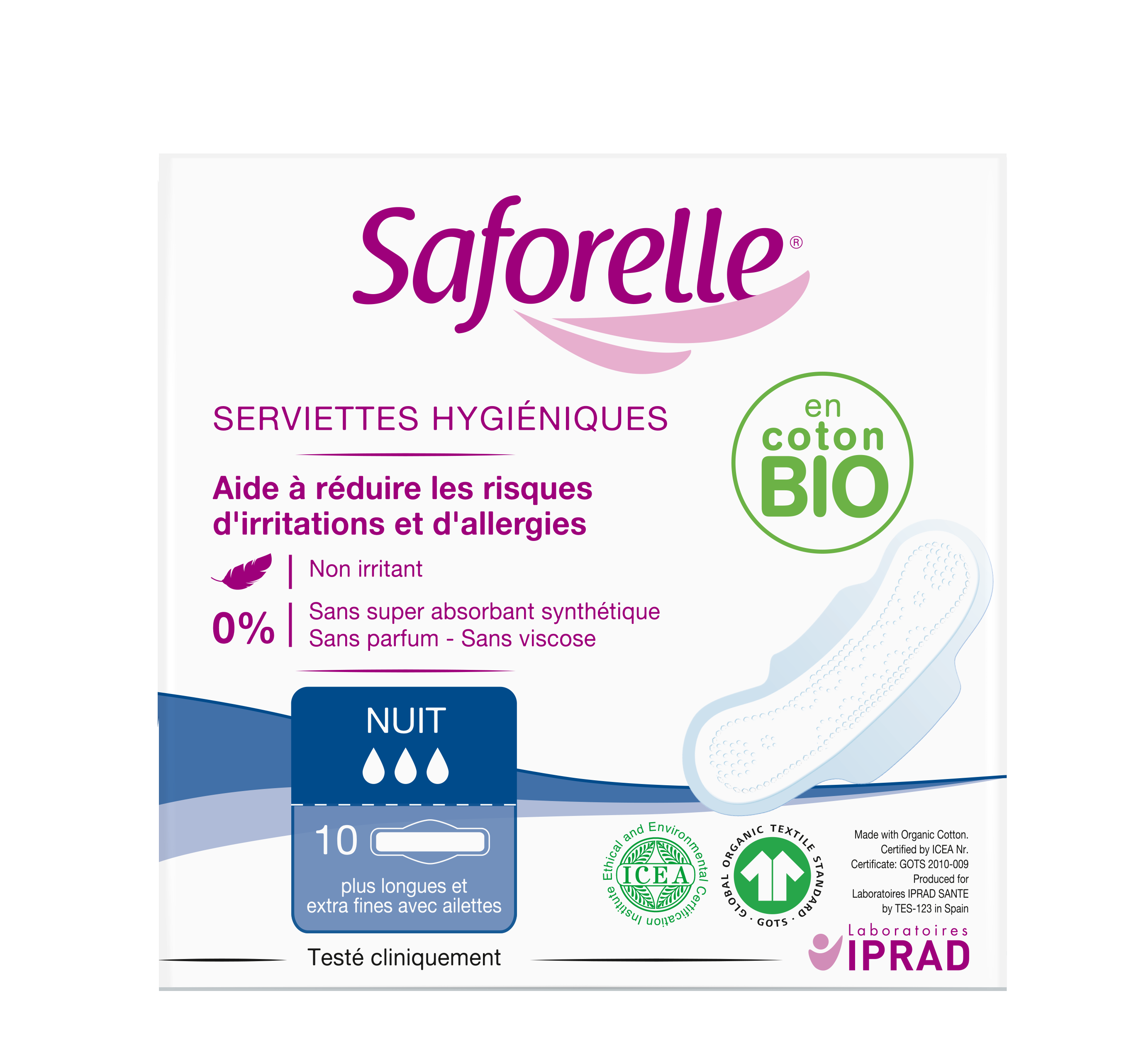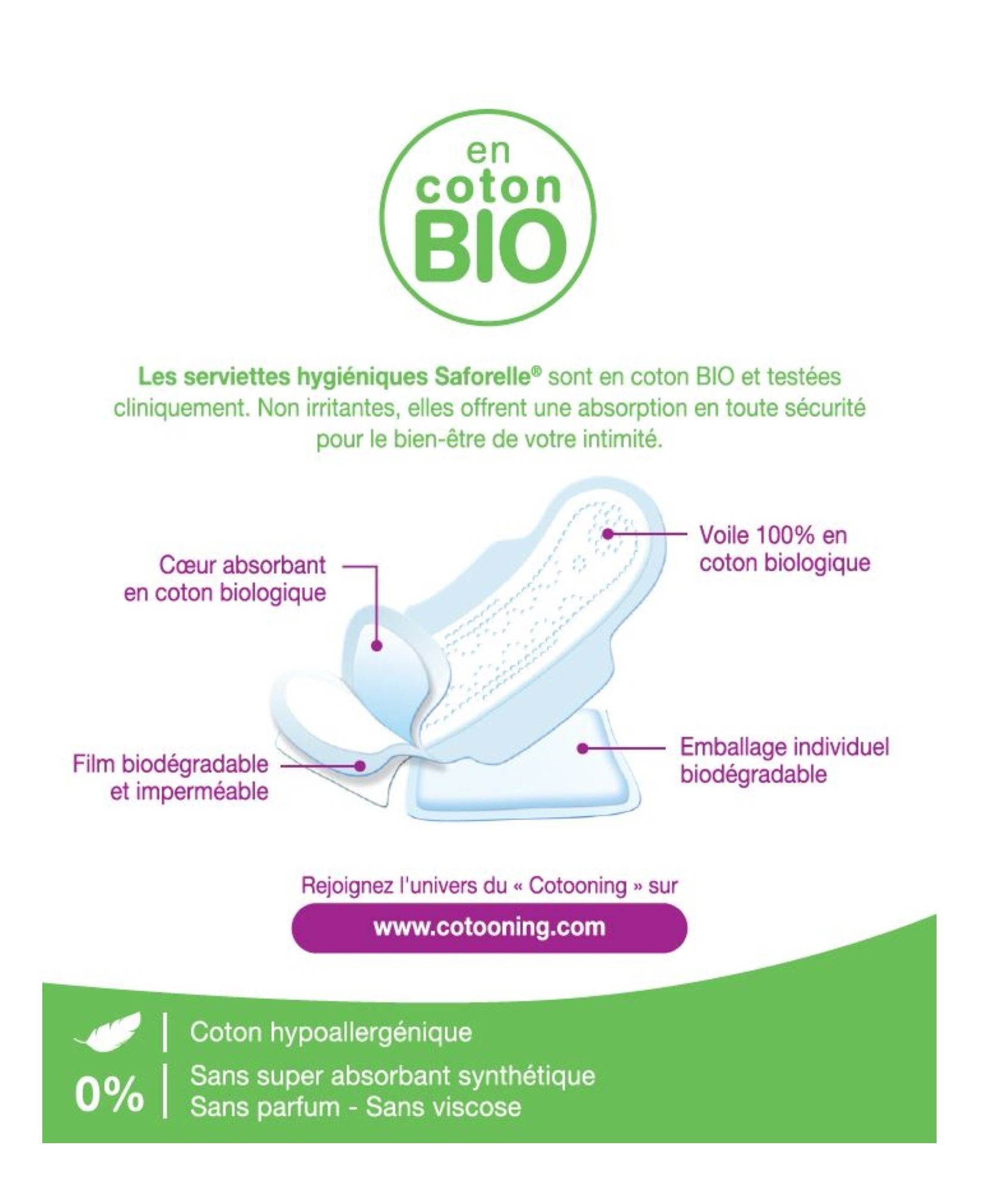 | Libellé | Saforelle coton protect serviettes hygiéniques nuit boîte de 10 |