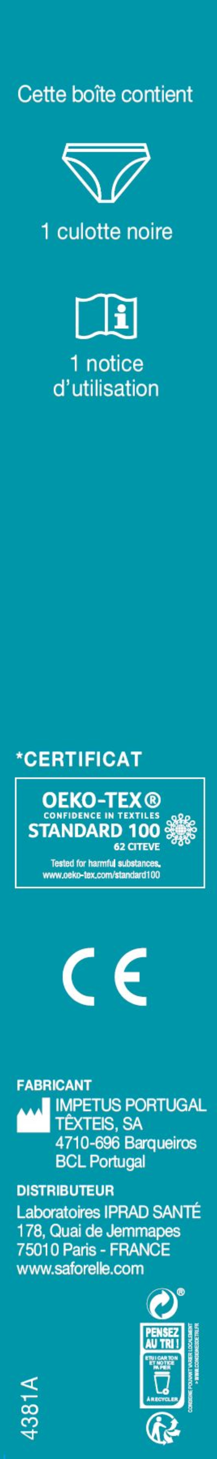 | Libellé | Saforelle Culotte fuites urinaires noire XL (42) |