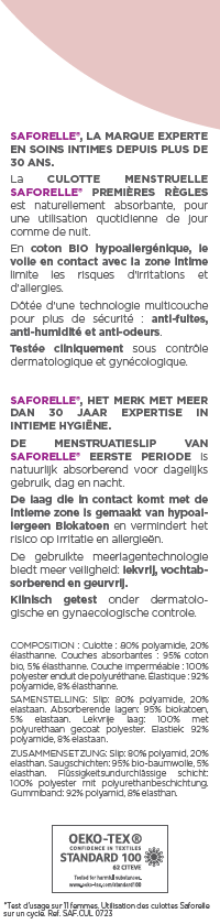 | Libellé | Saforelle Culotte Menstruelle Pour Les Premières Règles |