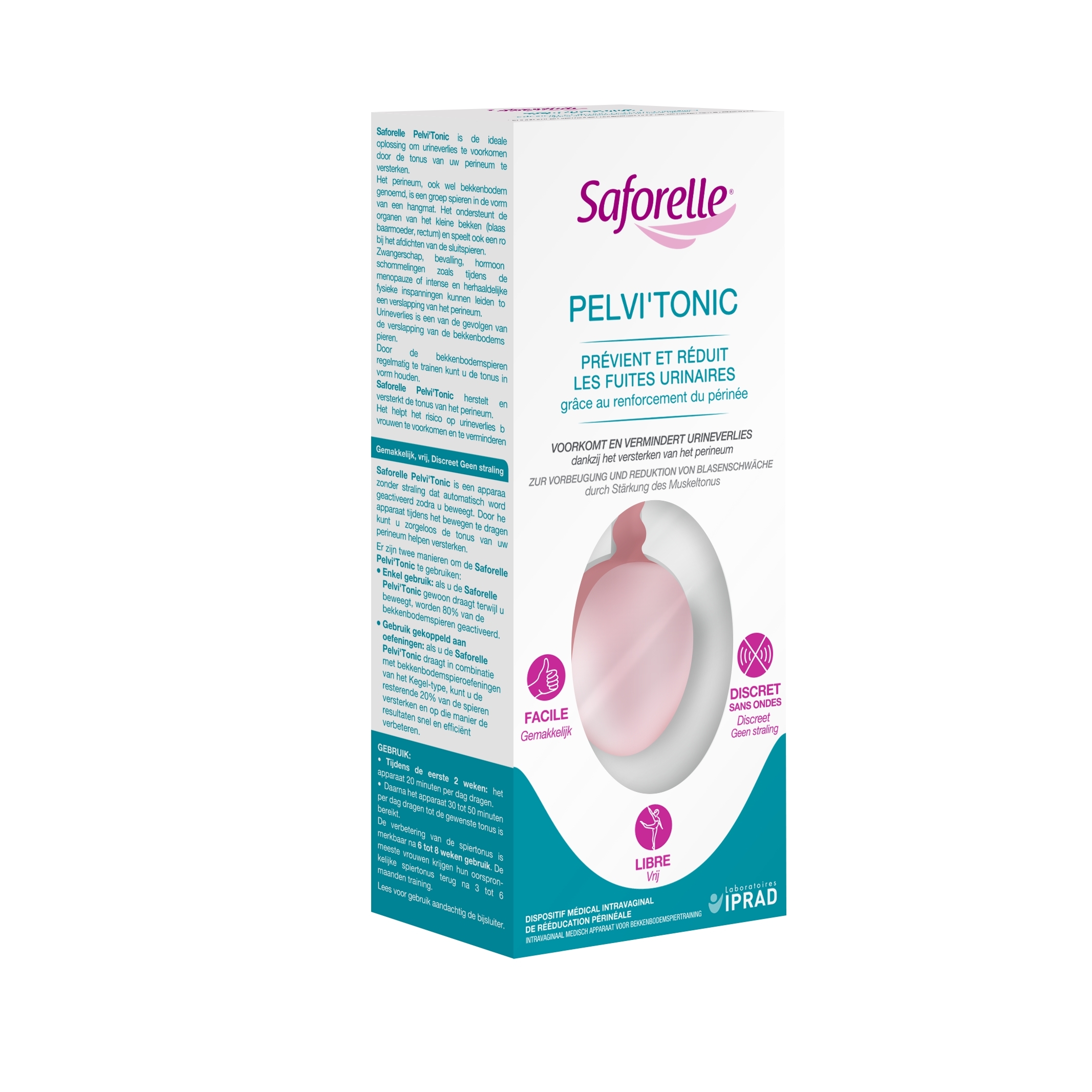Saforelle Pelvi'Tonic est la solution idéale pour prévenir les fuites urinaires en renforçant la tonicité du périnée. Le périnée, appelé aussi plancher pelvien est un ensemble de muscles en forme de hamac. Il soutient les organes du petit bassin (vessie, utérus, rectum) et joue également un rôle dans l'étanchéité des sphincters. La grossesse, l'accouchement, les bouleversements hormonaux comme la ménopause ou des efforts physiques intenses et répétés peuvenet entraîner un relachement du périnée. Les fuites urinaires sont une conséquence du relachement pelvien. Entraîner régulièrement les muscles pelviens permet de garder leur tonicité. Saforelle Pelvi'Tonic restaure et renforce la tonicité du périnée. Il permet de prévenir et de réduire les risques de fuites urinaires chez les femmes. Saforelle Pelvi'Tonic est un dispositif sans ondes qui crée des vibrations lorsqu'il est en mouvement. Ainsi le simple port du dispositif pendant les activités du quotidien contribue, sans avoir à y penser, à renforcer la tonicité de votre périnée.