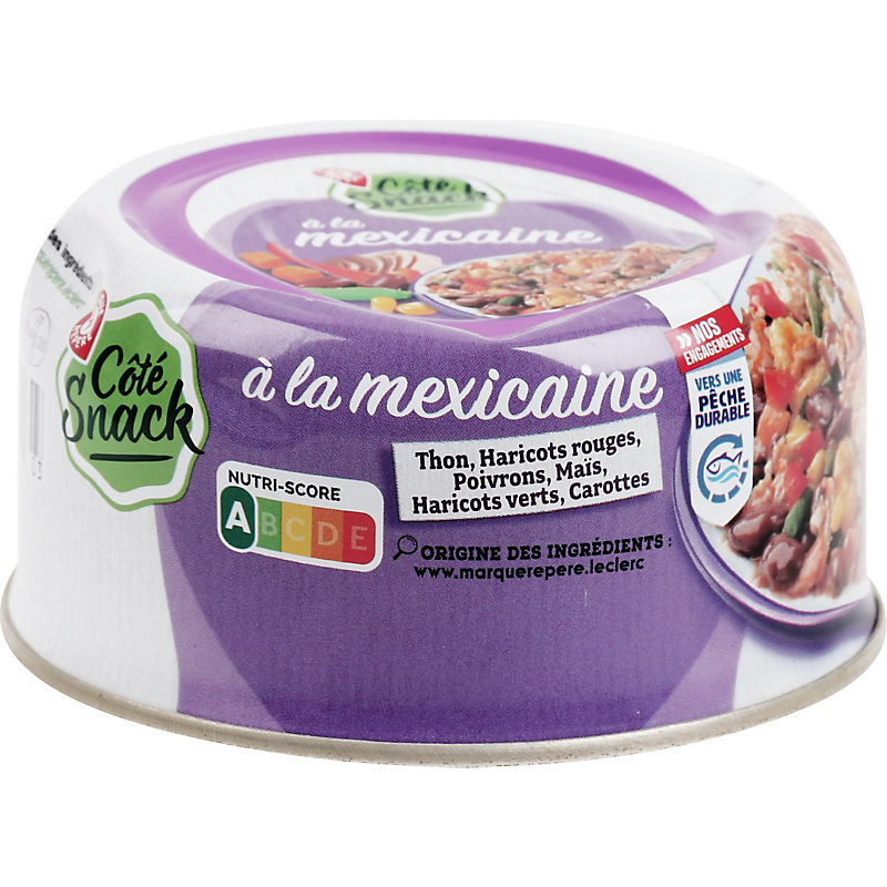 | Origine des principaux ingrédients | THON PECHE EN : OCEANS ATLANTIQUE CENTRE-EST, ATLANTIQUE SUD-EST, ATLANTIQUE SUD-OUEST, OCEANS INDIEN EST, INDIEN OUEST, PACIFIQUE CENTRE-EST, PACIFIQUE CENTRE-OUEST, PACIFIQUE SUD-EST ET/OU PACIFIQUE SUD-OUEST*, POIVRON ORIGINE : AFRIQUE, ASIE ET/OU EUROPE*, MAIS ORIGINE : EUROPE ET/OU ASIE*, HARICOT VERT ORIGINE : EUROPE, CAROTTE ORIGINE : EUROPE, HARICOT ROUGE ORIGINE : AMERIQUE * SELON LES APPROVISIONNEMENTS ET/OU LES CARACTÉRISTIQUES GUSTATIVES RECHERCHÉES |