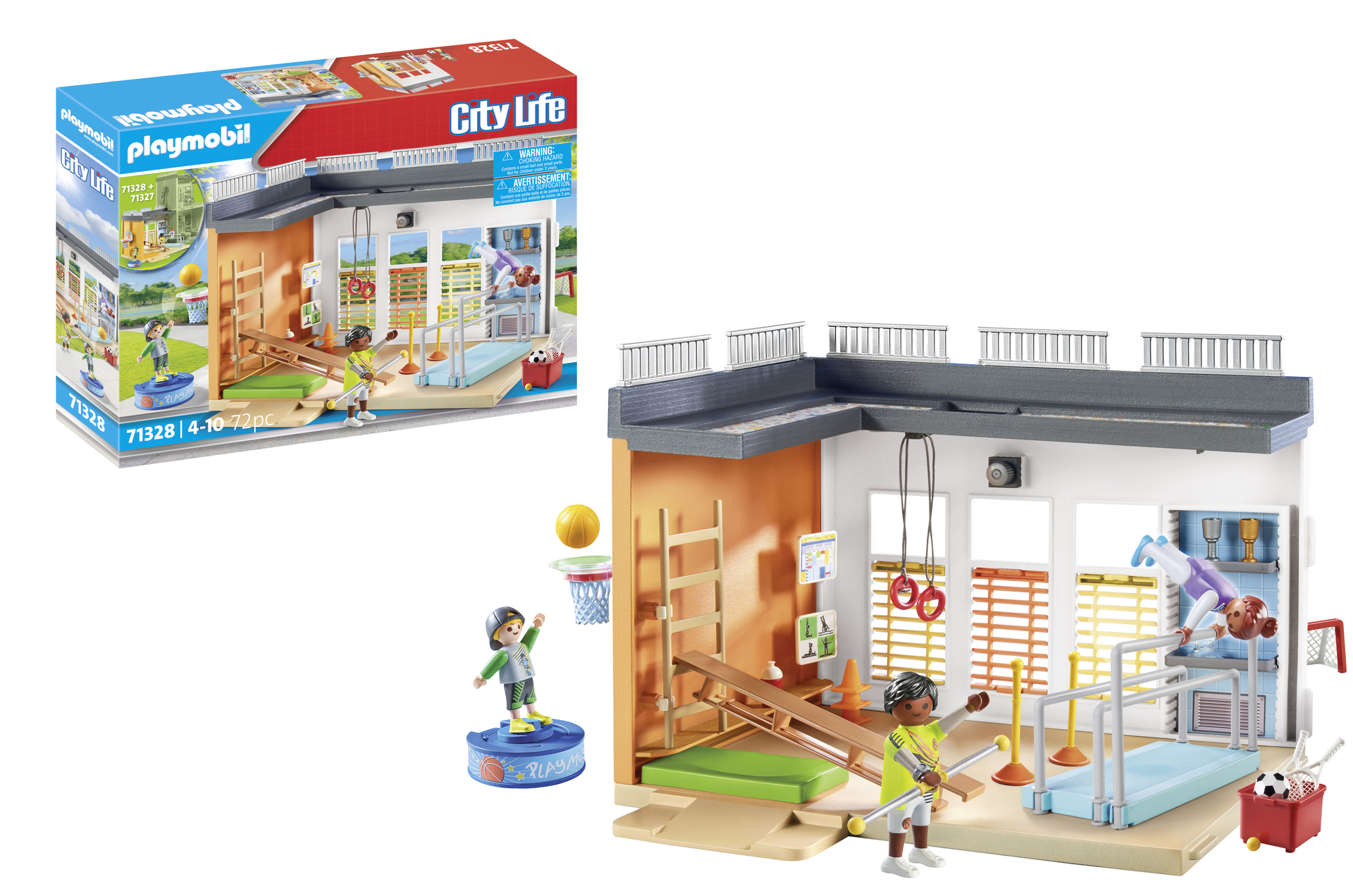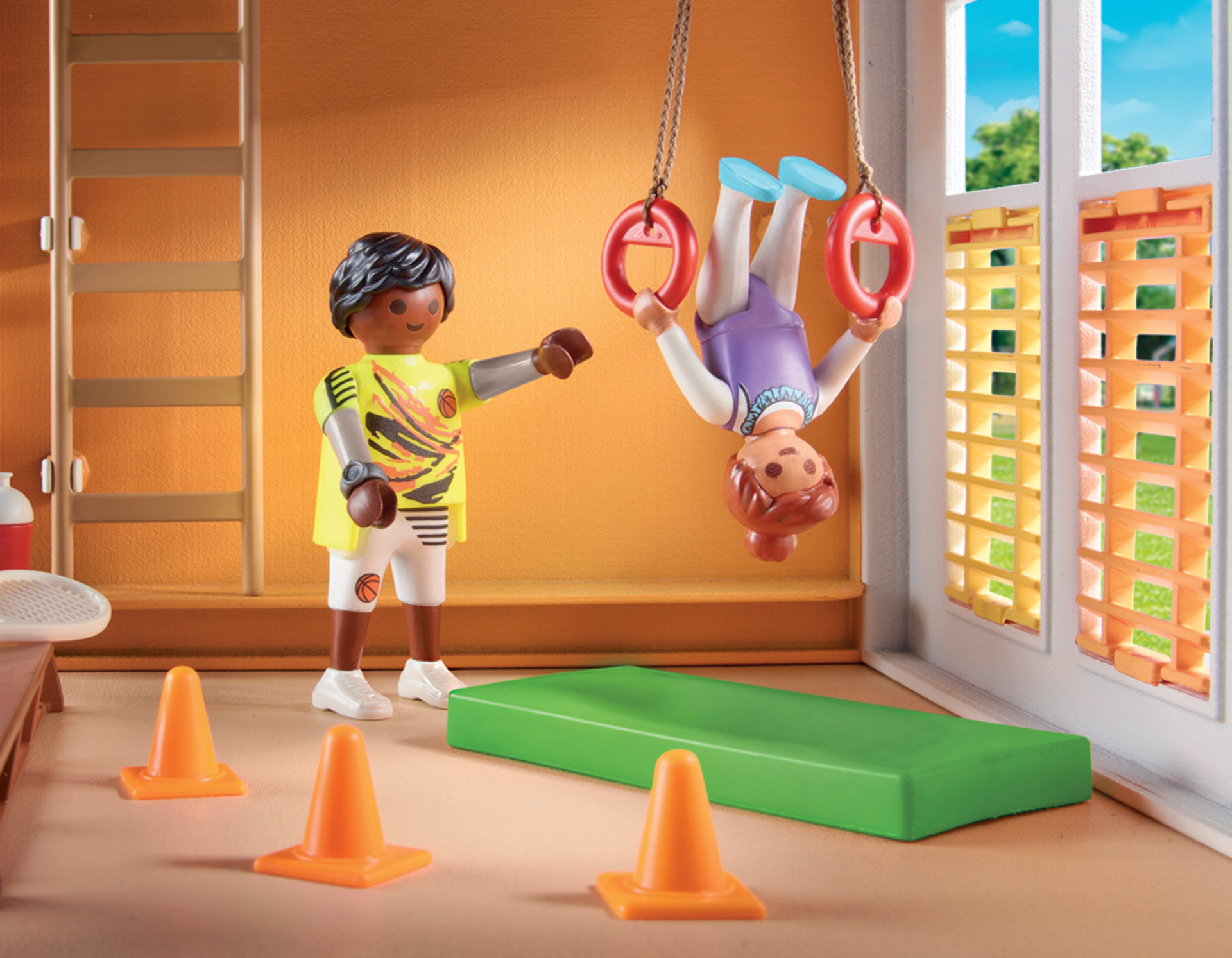 | Plus produit | Avec trois personnages et plusieurs équipements de sports. \nLe socle fonctionnel permet au personnage enfant de marquer vraiment des paniers de basket. \nLa salle de sport permet d\'agrandir l\'école (réf. 71327). |