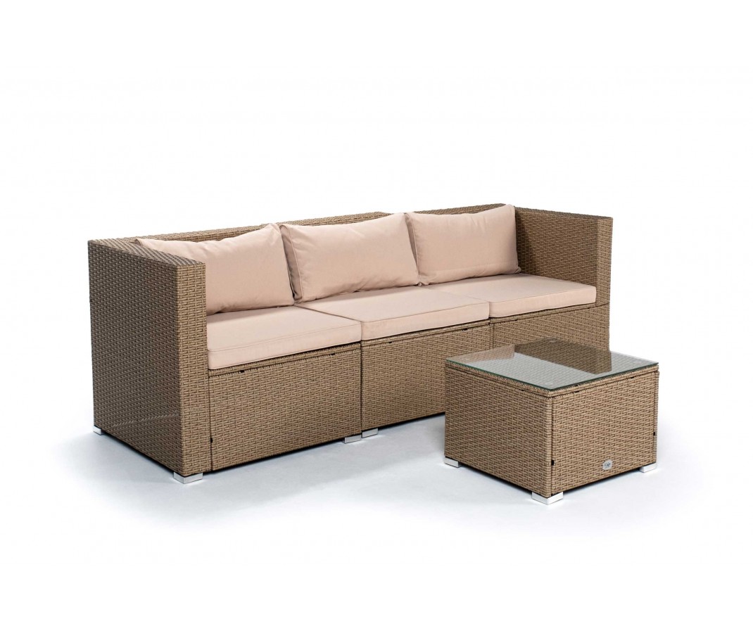 Le canapé triple Bahamas avec table est un ensemble modulaire moderne de mobilier d'extérieur. Il se compose d'un canapé triple et d'une table basse, et est donc conçu pour accueillir 3 personnes.