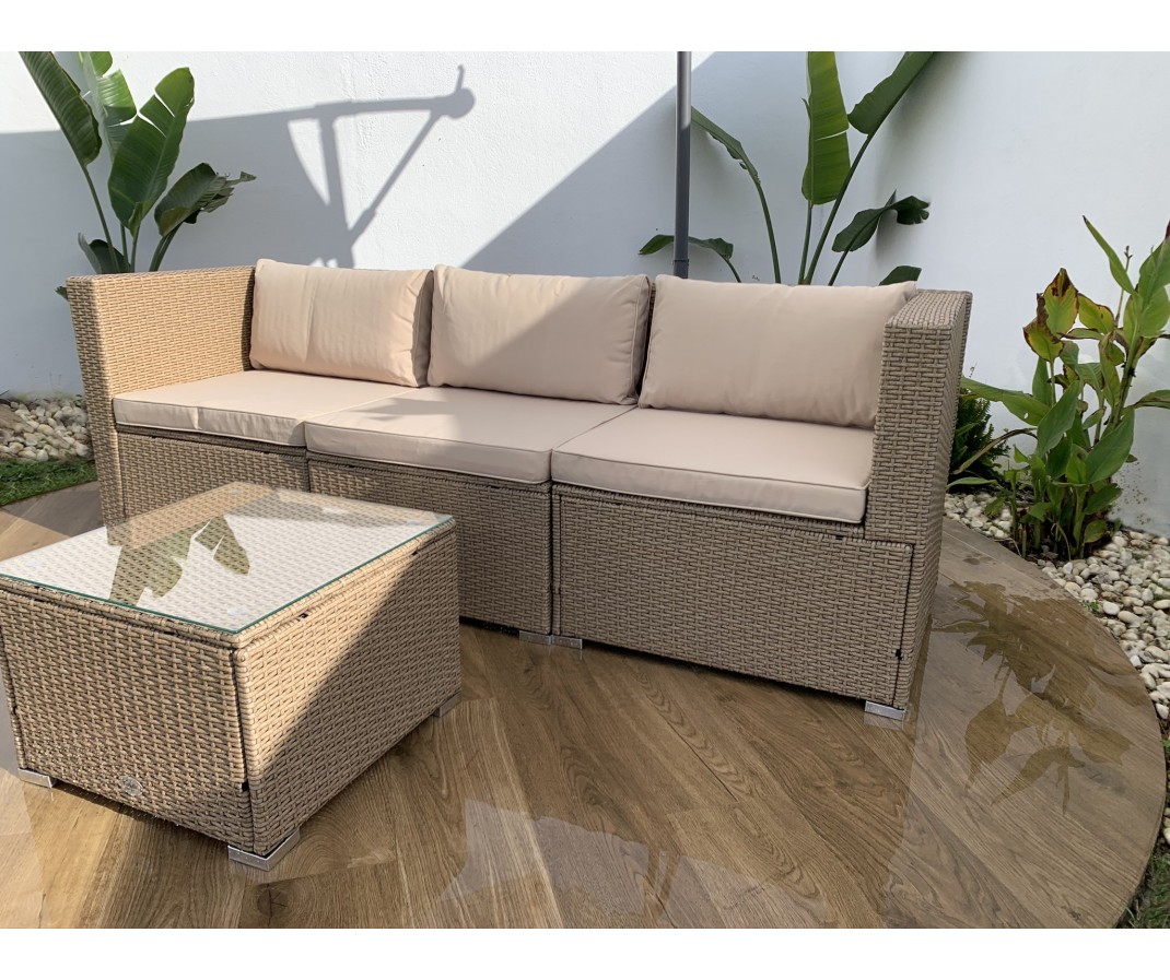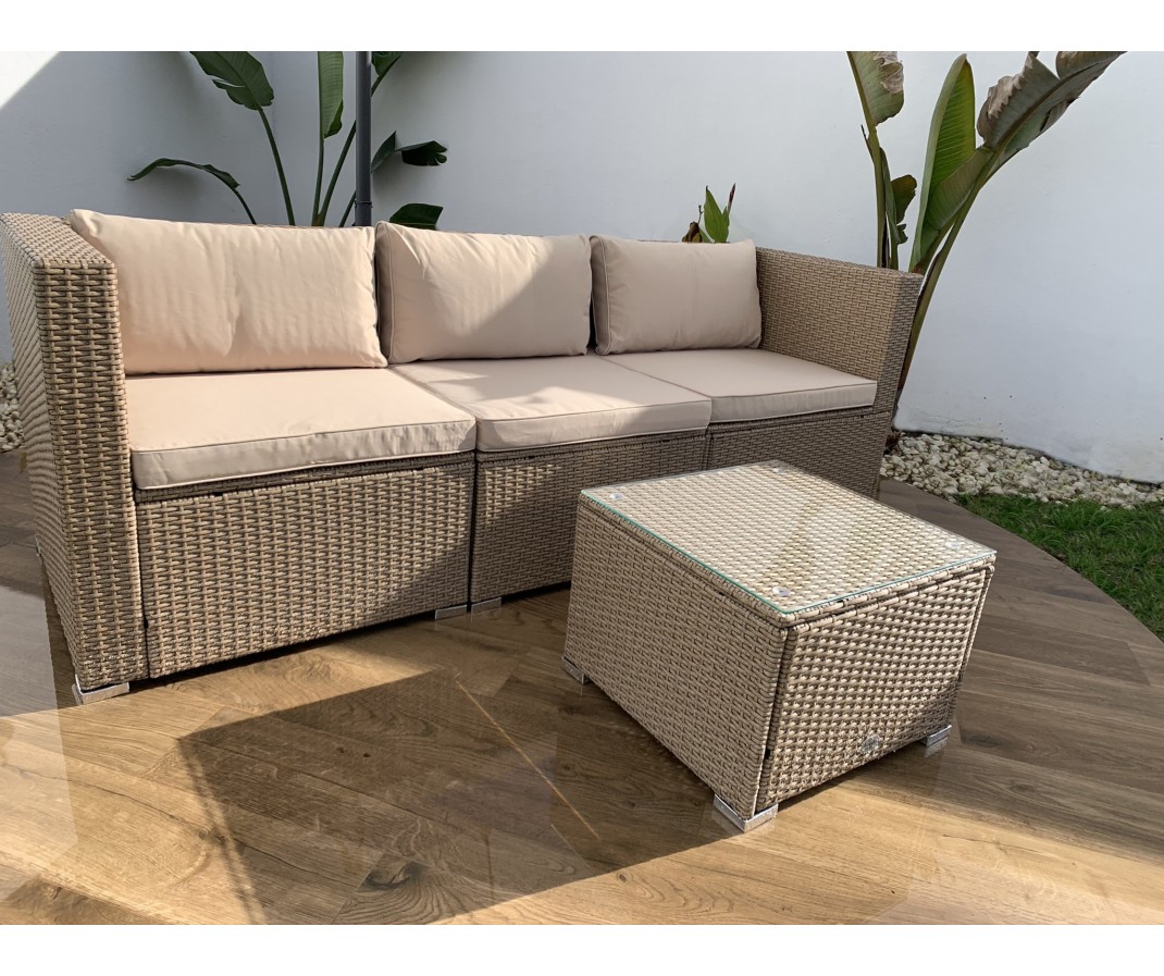 Salon bas de jardin 3 places bahamas canapé triple avec table kiefergarden