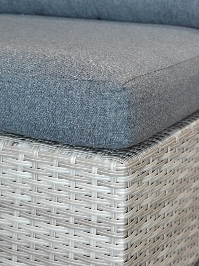 Au design moderne et élégant, le salon bas de jardin CHYPRE est modulable et pratique. Il a été conçu dans un soucis de fonctionnalité et d'esthétisme pour vous procurer d'agréables moments sur votre terrasse ou dans votre jardin. Le salon CHYPRE est composé d'un canapé 3 places, de deux fauteuils sans accoudoirs et d'une table basse, pouvant servir de pouf, grâce au coussin supplémentaire. Hormis le canapé 3 places, les trois autres éléments sont entièrement indépendants, vous permettant ainsi de moduler le salon, au gré de vos envies : en places assises ou même en configuration de lit. Sa fonction modulable est aussi soulignée par la présence de son auvent, réglable facilement grâce à un système de vérins. Cet ensemble possède une strucure en aluminium et un revêtement en résine tressée, coloris gris naturel. La resine tressée, parfaite imitation du rotin, procurera un esprit charme à votre extérieur. Ses 6 coussins d'assise et 7 coussins de dossier sont en polyester 230gr/m² coloris gris, texture chiné, épaisseur 10 cm. Ils sont déhoussables, facilitant leur entretien. La table basse possède un plateau en verre, d'une épaisseur de 5mm. L'auvent est en polyester 300gr/m2, déperlant, vous protégeant à la fois des rayons du soleil et de pluies fines. 1 table basse avec plateau en verre 5mm d'épaisseur Structure en aluminium epoxy anthracite Résine tressée gris naturel, imitation rotin Coussins en polyester 240gr/m2, coloris gris chiné, déhoussables Auvent en polyester 300gr/m2, toile déperlante pour une protection optimale, fonctionnel grâce au système de vérins Pieds du salon en aluminium Dimensions du canapé : L.220 x P.70 x H.82 cm Dimensions d'un fauteuil : L.64 x P.77 x H.88 cm Dimensions de la table : L.64 x P.64 x H.32 cm 5 convives 1 colis n° 1 Dimensions (LxlxH) : 220cm x 93cm x 83cm - Poids : 68,7kg