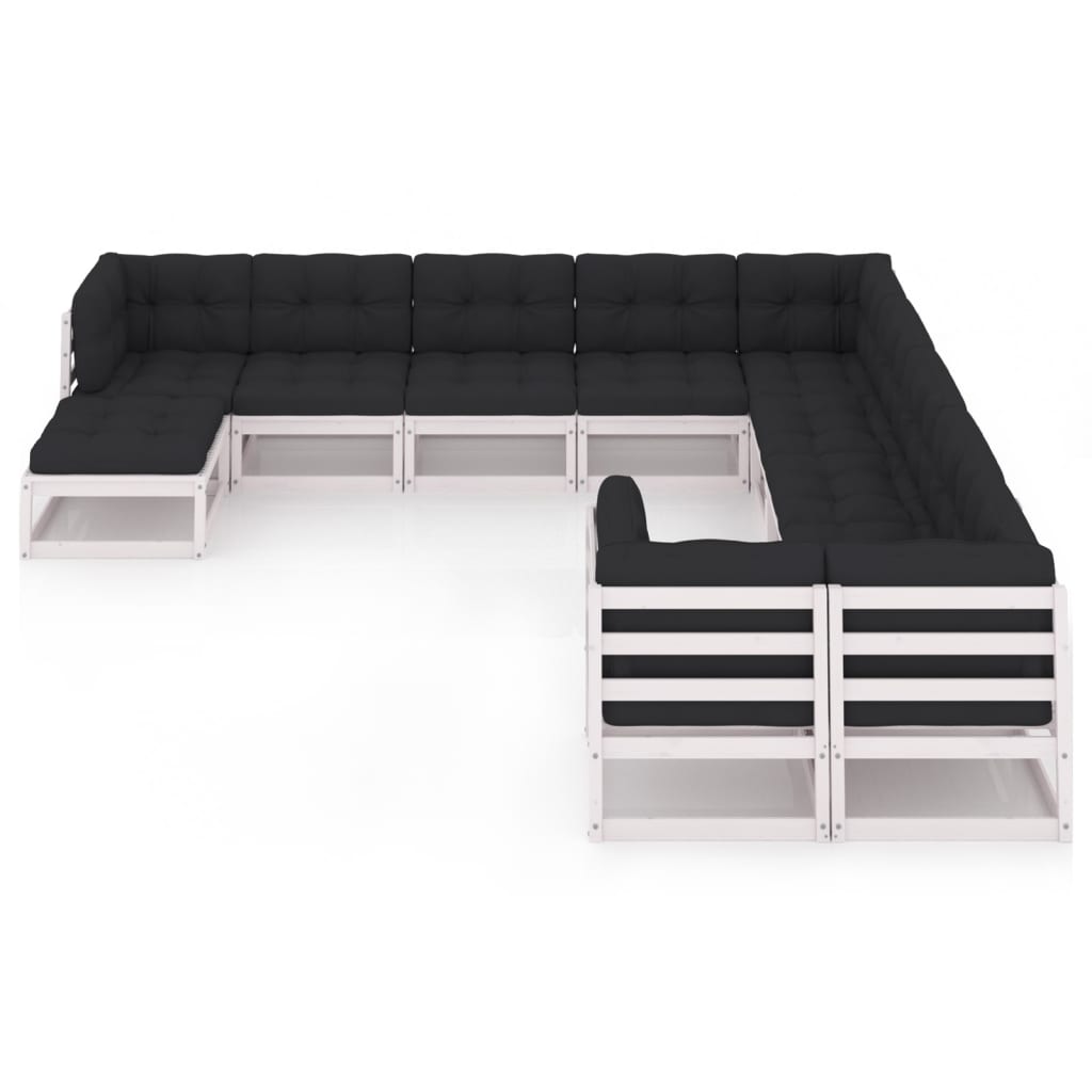 Salon de jardin 11 pcs avec coussins Blanc Bois de pin massif 12