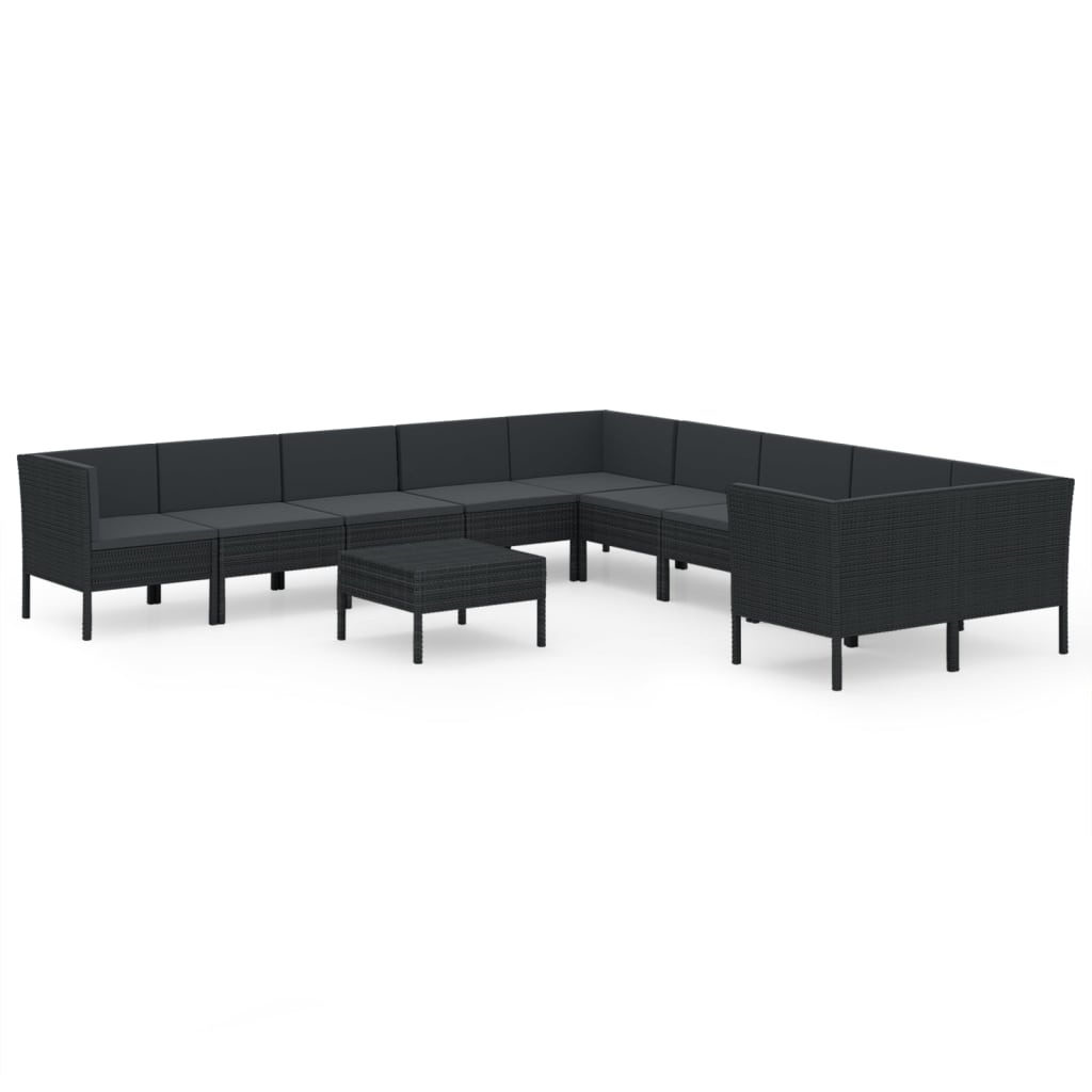 Salon de jardin 11 pcs avec coussins Résine tressée Noir 31