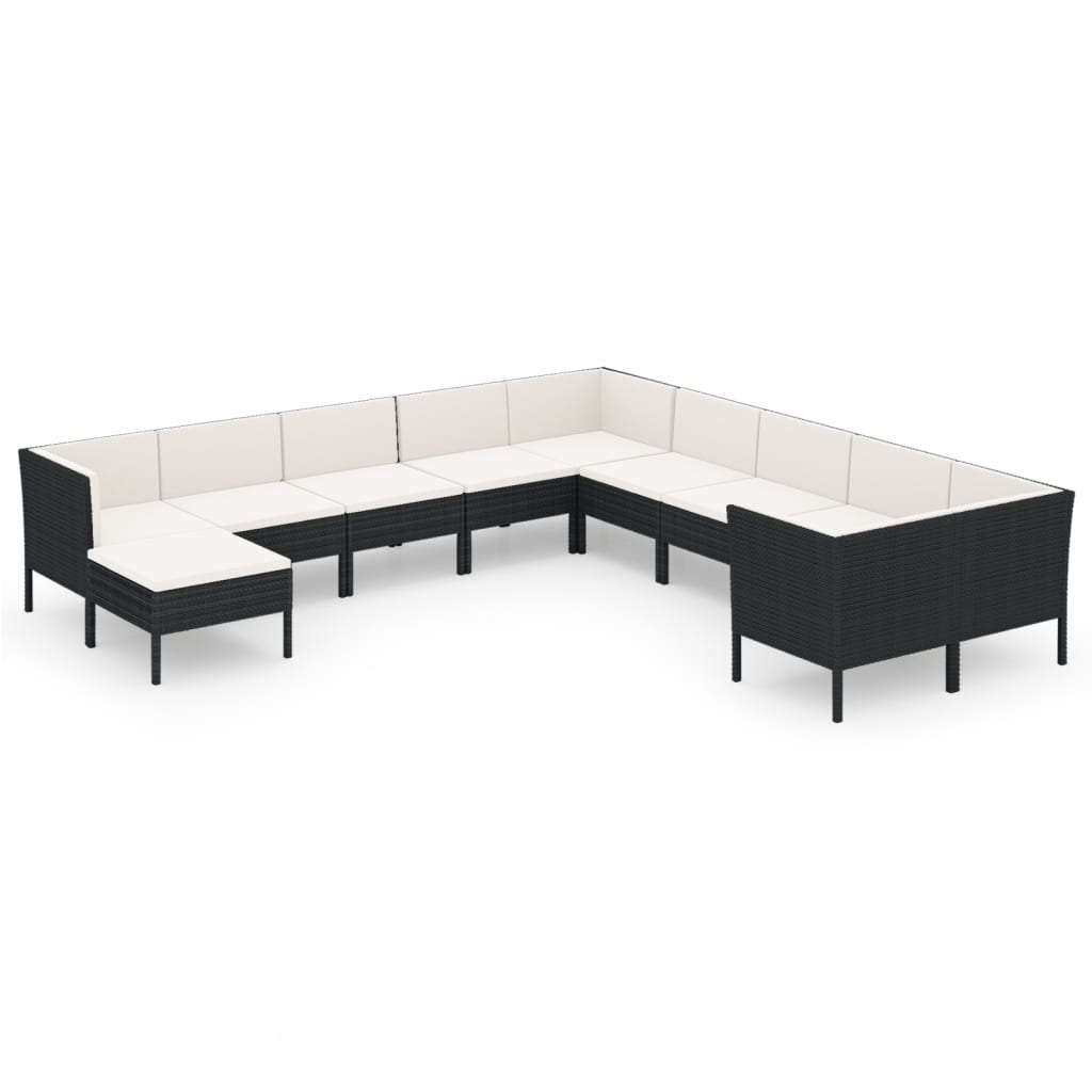 Salon de jardin 11 pcs avec coussins Résine tressée Noir 37