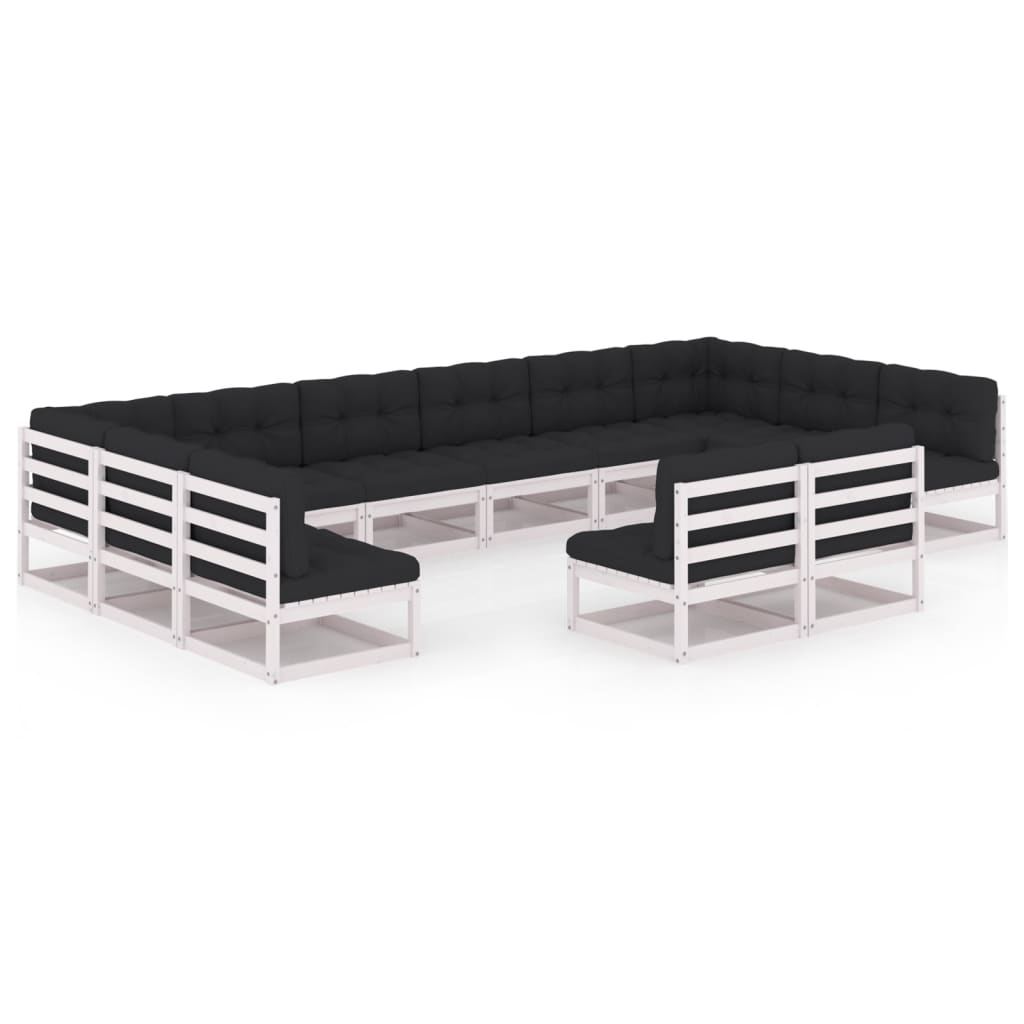 Salon de jardin 12 pcs avec coussins Blanc Bois de pin massif 12